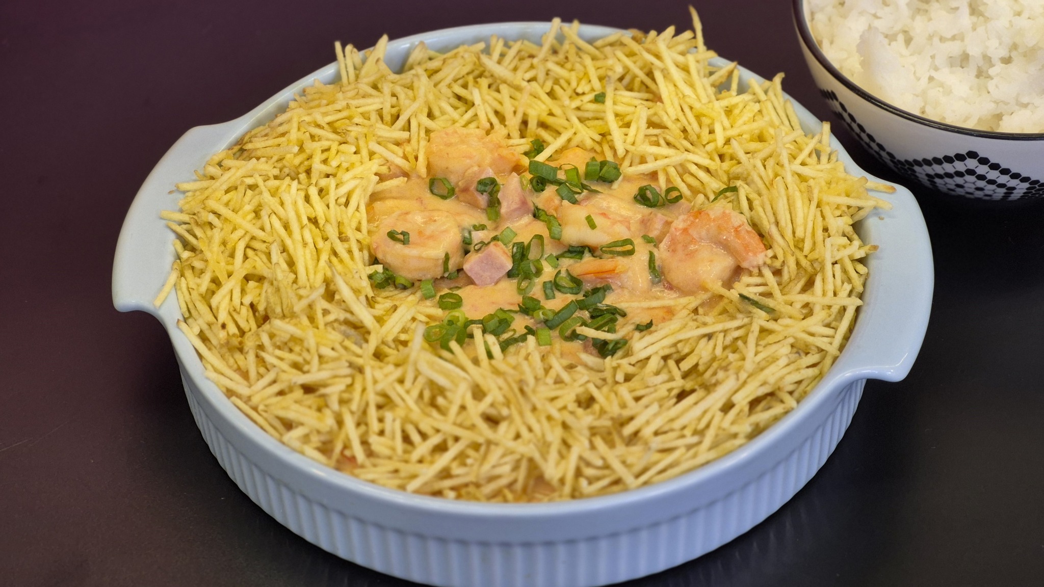 6. Desligue, ajuste o sal e a pimenta e finalize com cebolinha verde