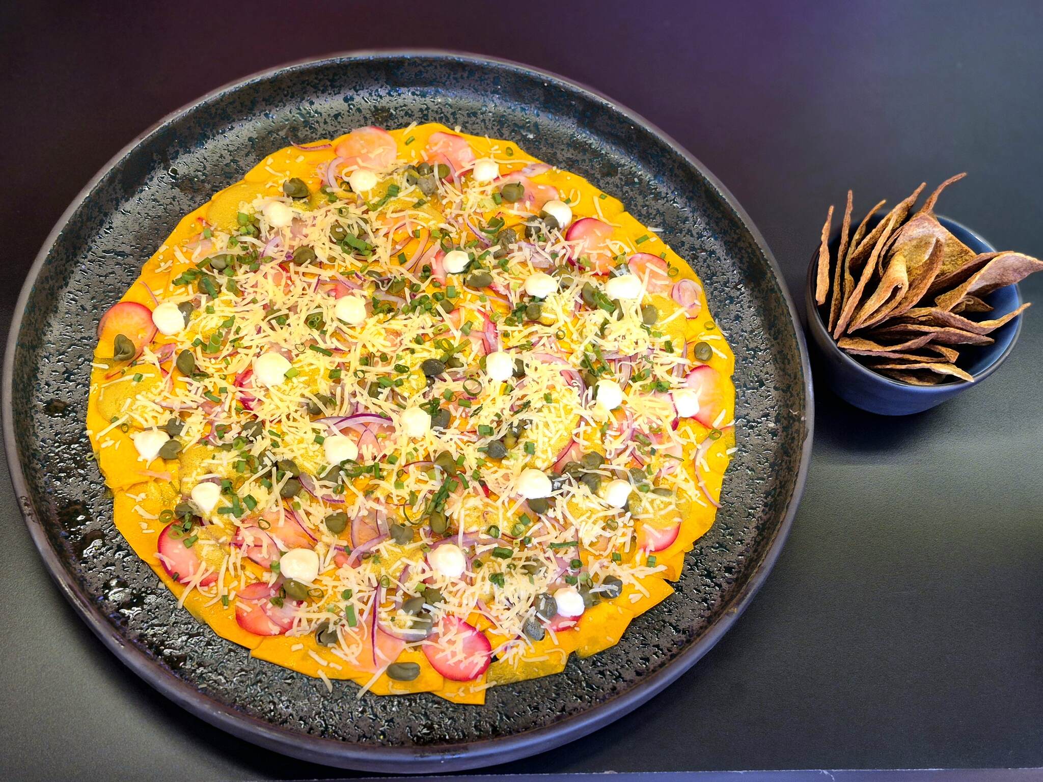 5. Em uma travessa, monte o carpaccio de abóbora.