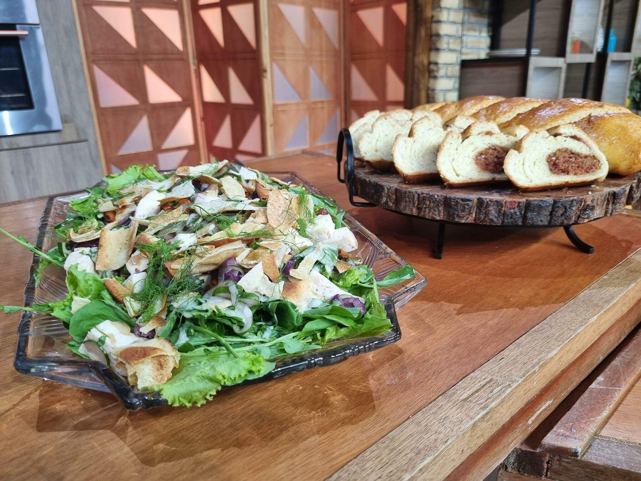 Outra receita irresistível e saudável que será feita é uma Salada Grega. Vale lembrar que, em períodos de altas temperaturas, as saladas são uma ótima opção, pois são de fácil preparo, além de serem sinônimo de comida saudável. Existem saladas doces, salgadas e mistas, ou seja, que misturam os dois sabores. A que será ensinada pelo chef Leo, além de ingredientes comuns deste tipo de preparo, também acompanha pão sírio e castanhas, trazendo uma maior saciedade e uma ótima combinação de sabores. E para complementar a culinária, ainda será preparado um molho para temperá-la.