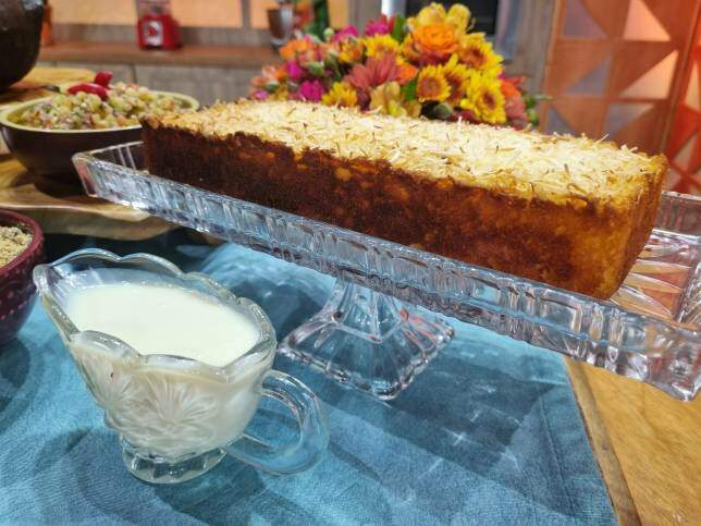 Por fim, a sobremesa preparada é Bolo de Macaxeira. A macaxeira também conhecida como mandioca e aipim, é um dos alimentos base da culinária indígena brasileira. O bolo de macaxeira é um herdeiro direto das receitas que usavam a raiz ralada, misturada com mel ou frutas nativas. A mandioca é uma raiz rica em carboidratos complexos, o que faz do bolo uma excelente fonte de energia.