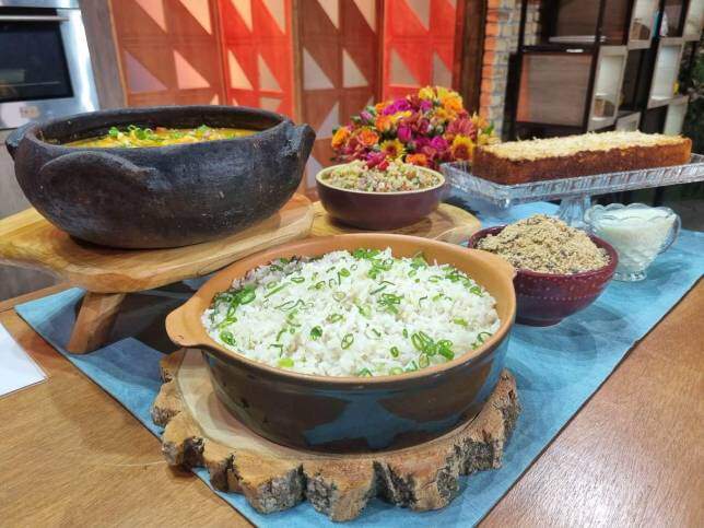 Chef Leo Roncon começa fazendo um Arroz de Coco e Molho Lambão. Esse tipo de arroz é tradicional na culinária afro-brasileira, especialmente em estados como Bahia, Alagoas e Pernambuco. Ele nasceu da mistura entre a técnica africana de cozinhar arroz e o uso abundante do coco nas regiões tropicais do Brasil. O Molho Lambão é uma iguaria típica da Bahia, muito usado como acompanhamento de acarajé, moquecas, carnes grelhadas e peixes. É um dos molhos mais tradicionais da cozinha de rua baiana. A origem do nome "Lambão" vem do ato de “lamber os beiços”, já que o molho é tão saboroso que dá vontade de comer puro e repetir várias vezes.