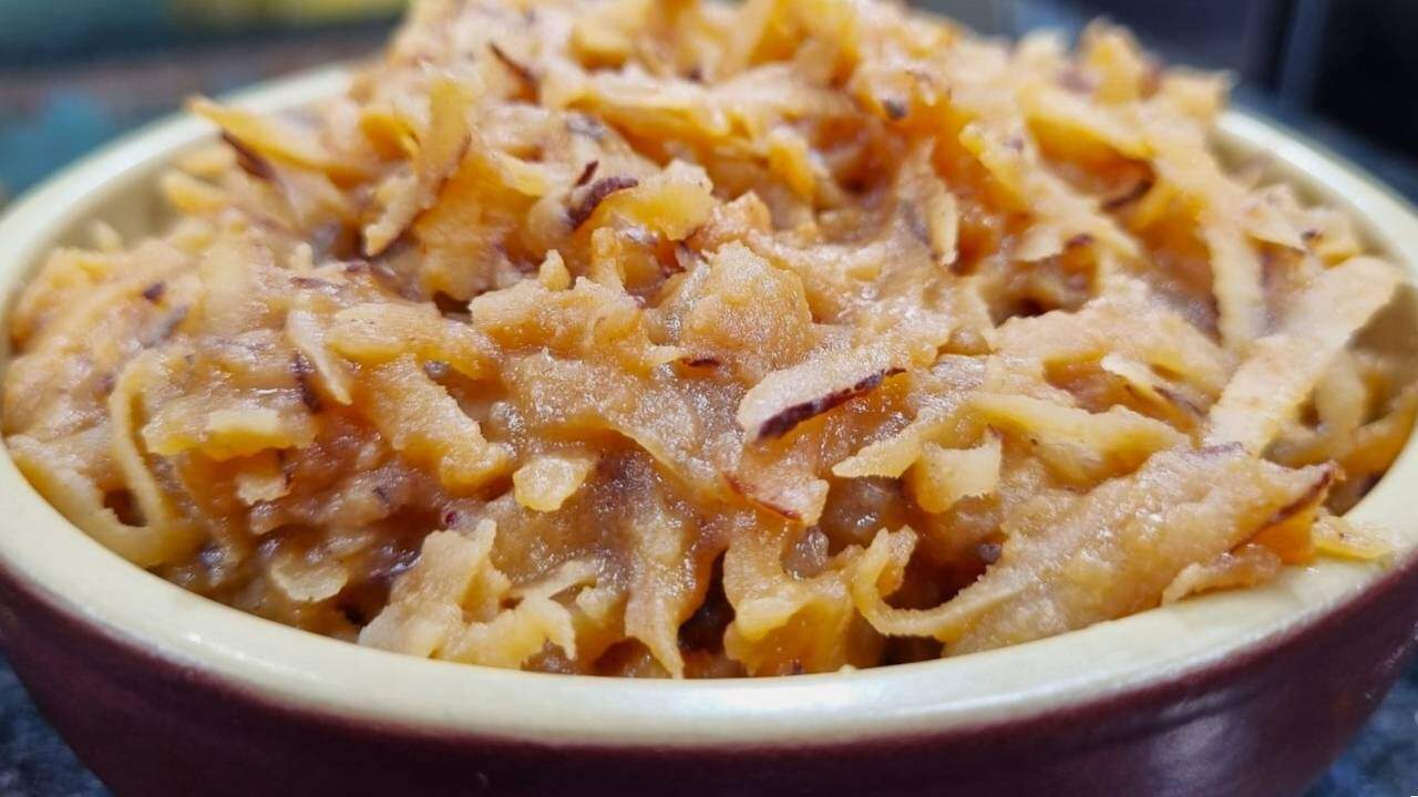 2. Coloque a água, deixe dissolver o açúcar e logo em seguida, coloque o coco fresco;
