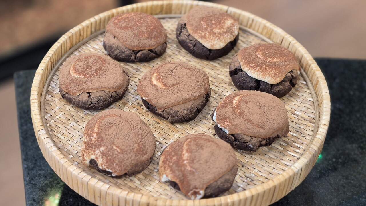 5. Retire do forno, espere esfriar. Coloque o creme por cima e polvilhe o cacau.
