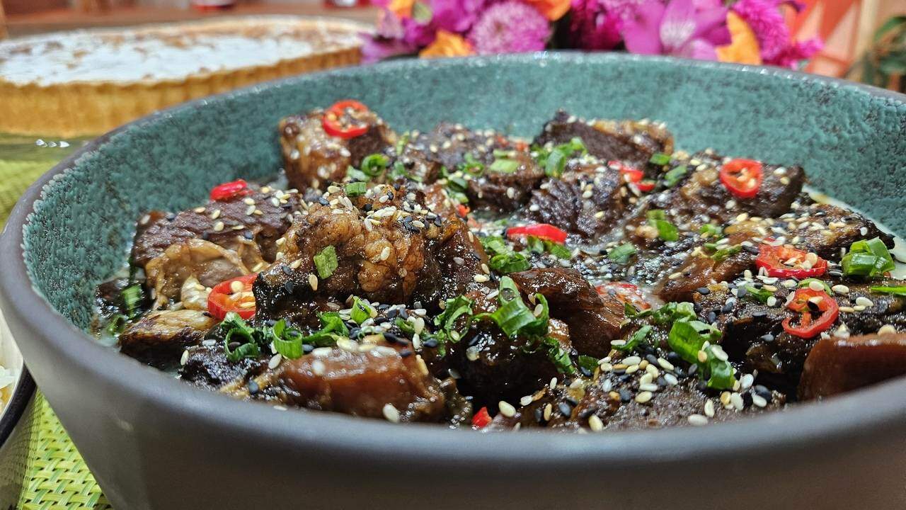 Após o cozimento, abra a panela e transfira a costela para uma frigideira, deixando reduzir o líquido.