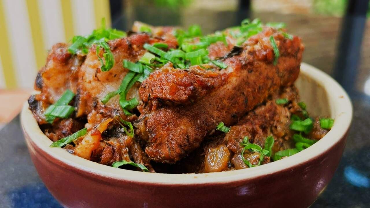 2. Em uma panela, leve as costelinhas para dourar de todos os lados;
