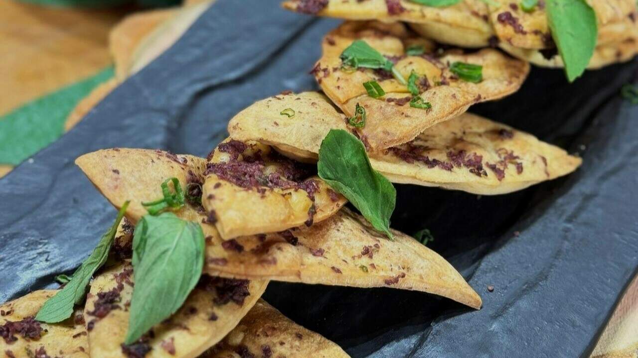 3 - Coloque o pesto de azeitona e volte ao forno por mais cinco minutos.
