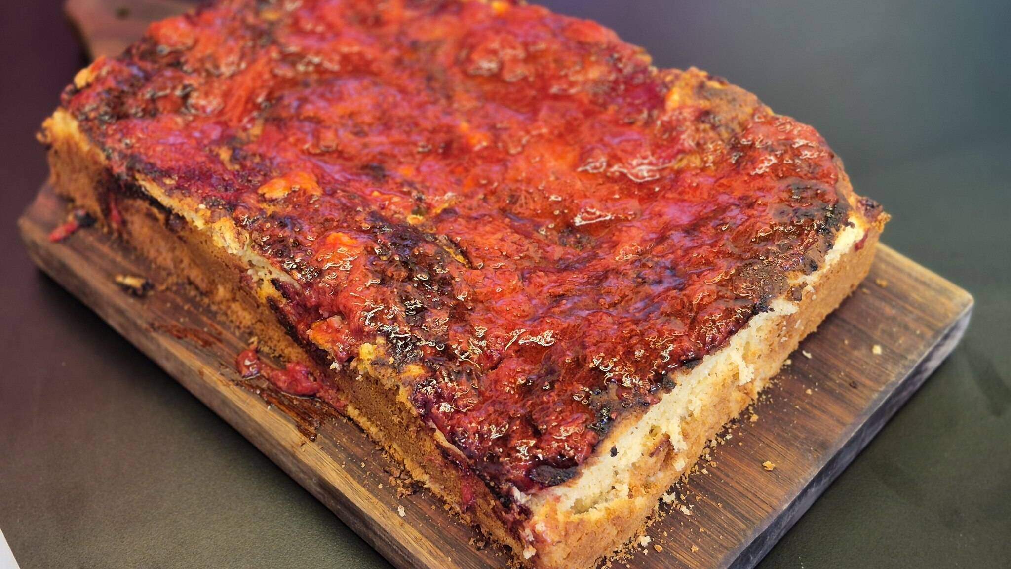 3. Cubra com a geleia, depois com a farofa e leve para assar a 200°C por 35 minutos.