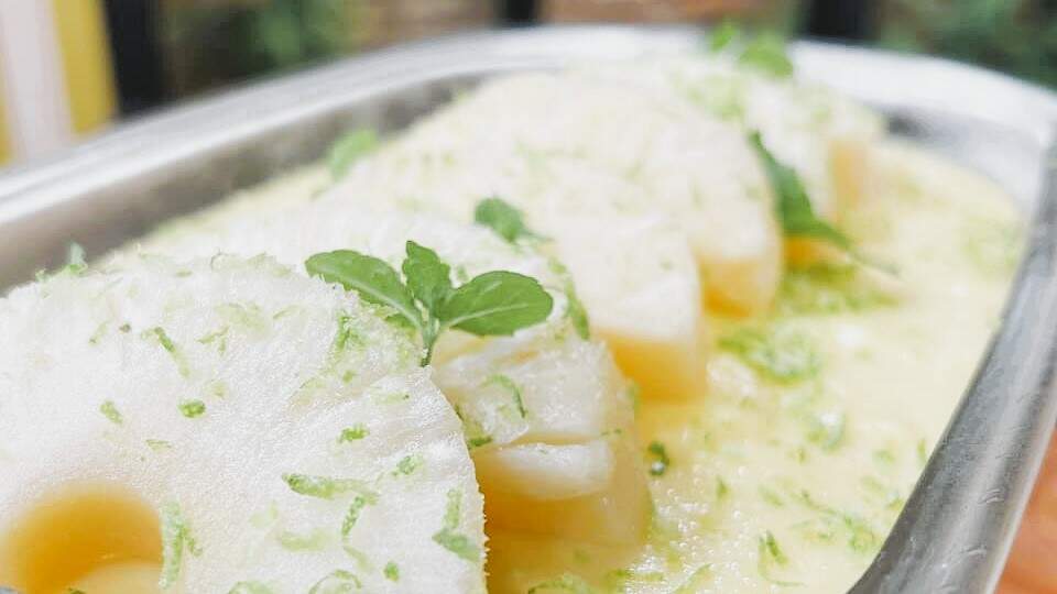 1. Coloque todos os ingredientes na panela, exceto o chocolate branco e o abacaxi em calda, mexa bem antes de ligar o fogo.
