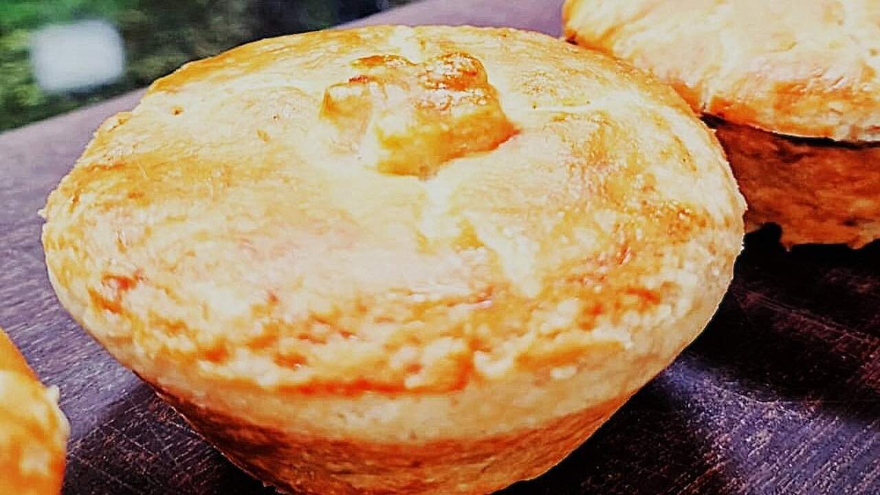 2. Abra a massa entre dois plásticos, forre a forminha, coloque o recheio e tampe com mais massa;