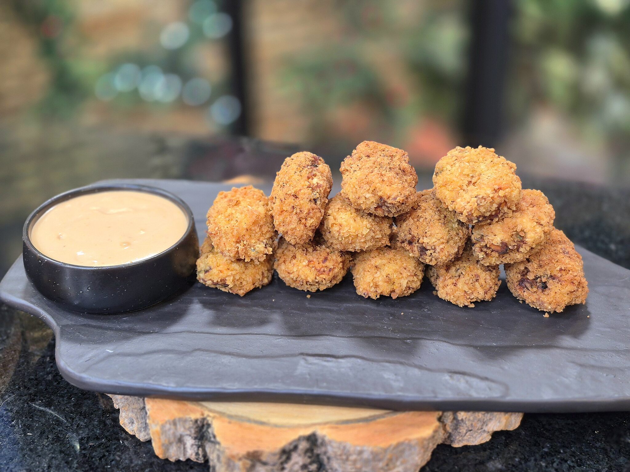4. Faça bolinhas e logo em sequência achate-as. Leve à geladeira por 1 hora.