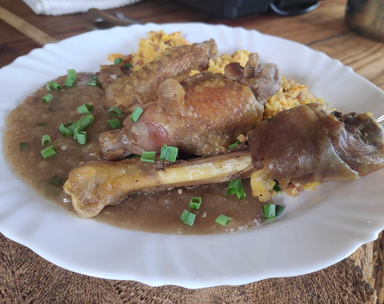 • Como o frango já leva todo o preparo, o pirão é feito com o caldo do frango