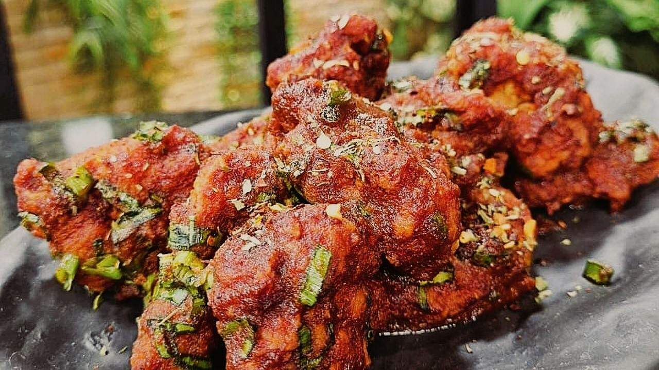 4. Passe os pedaços de sobrecoxa na farinha de trigo, retire o excesso, passe pelo líquido, novamente pela farinha e leve para fritar;