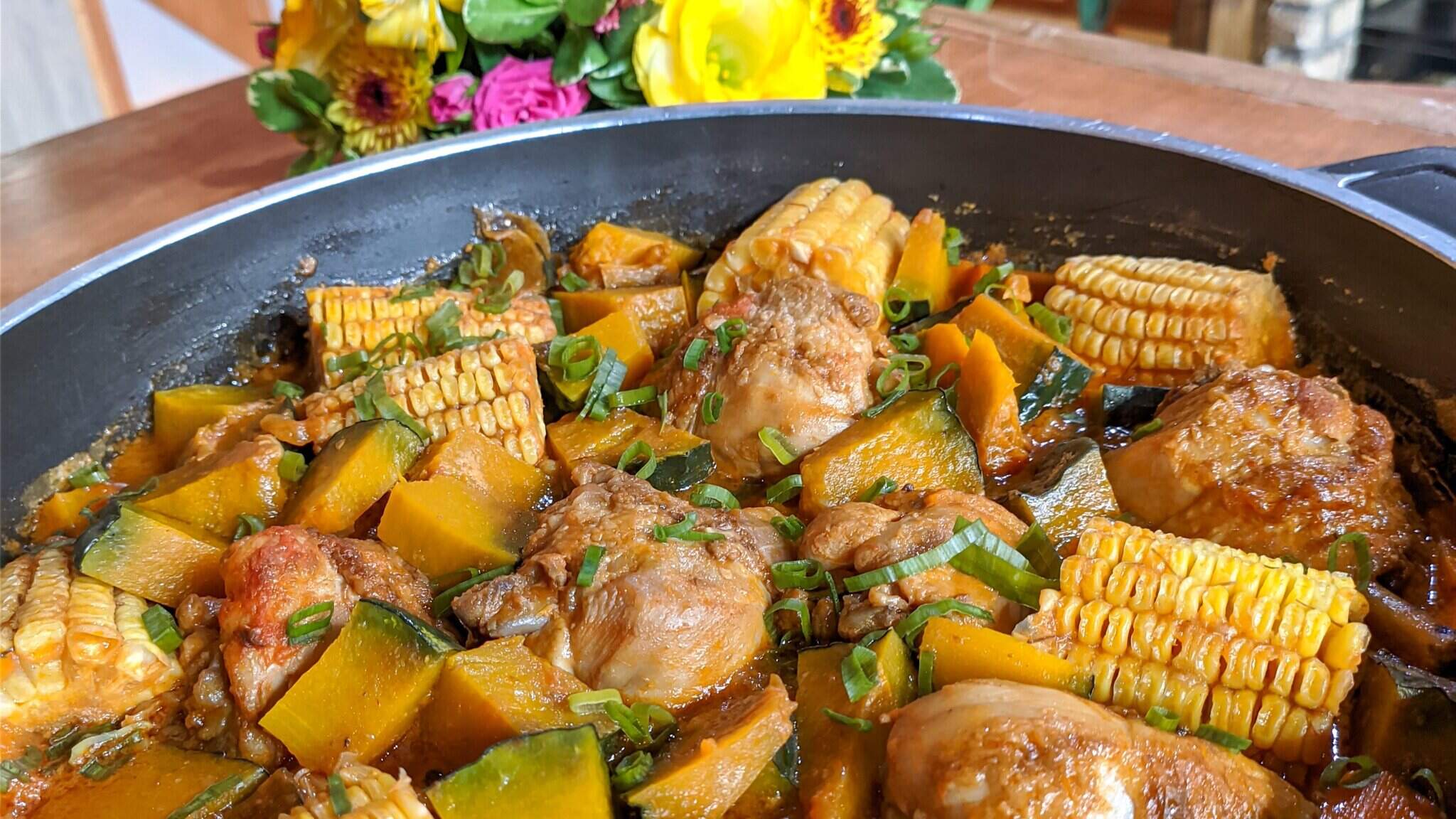 Adicione o tomate pelado, o caldo de frango, as espigas de milho cortadas e deixe cozinhar com a panela tampada por 40 minutos, abre a panela ajuste o sal e a pimenta coloque as abóboras e deixe cozinhar por 10 minutos até ficar cremoso.