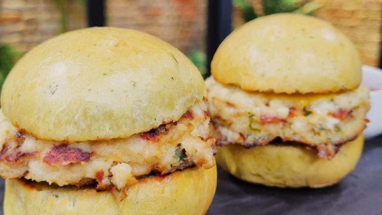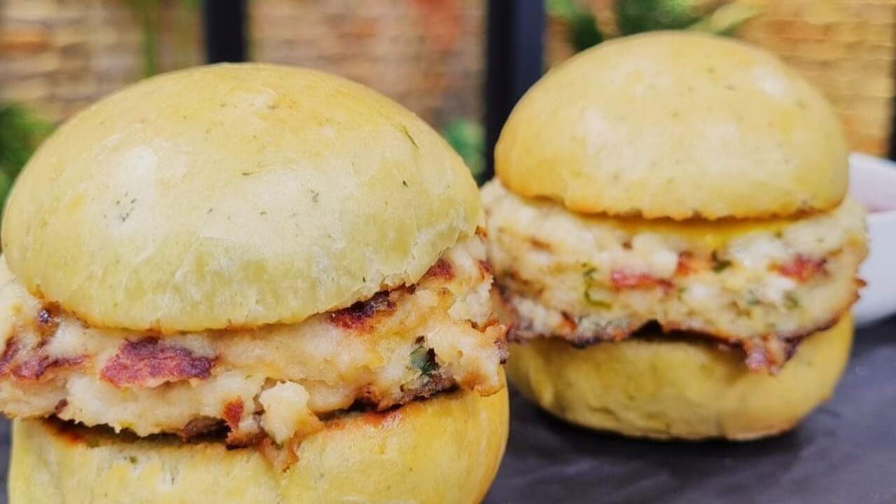 5 - Modele hambúrgueres de aproximadamente 150g . Grelhe com um fio de azeite;