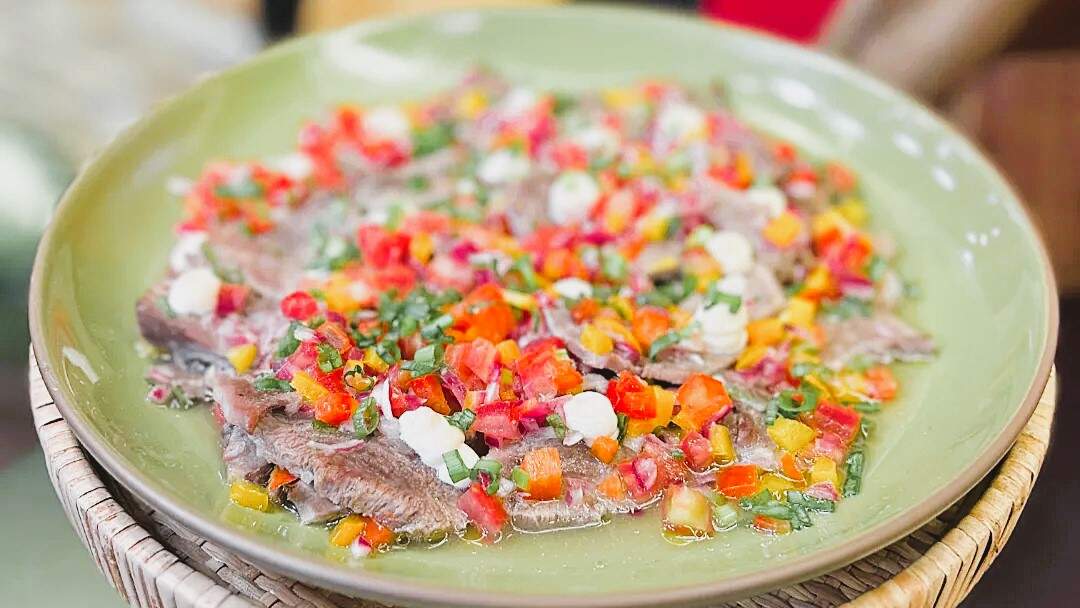 3. Corte em fatias finas misture com o restante dos ingredientes tudo bem picadinho, tempere com sal e pimenta azeite ou suco de limão.