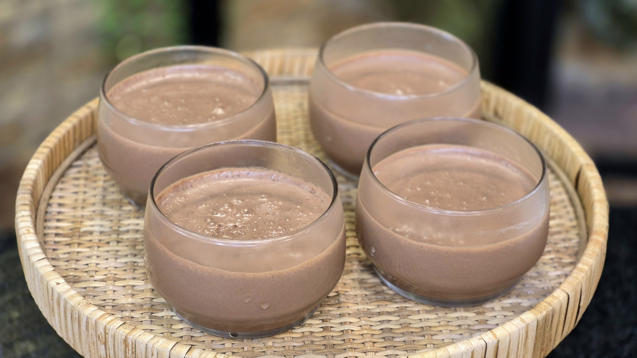 4- Coloque o caramelo por cima do mousse de chocolate.