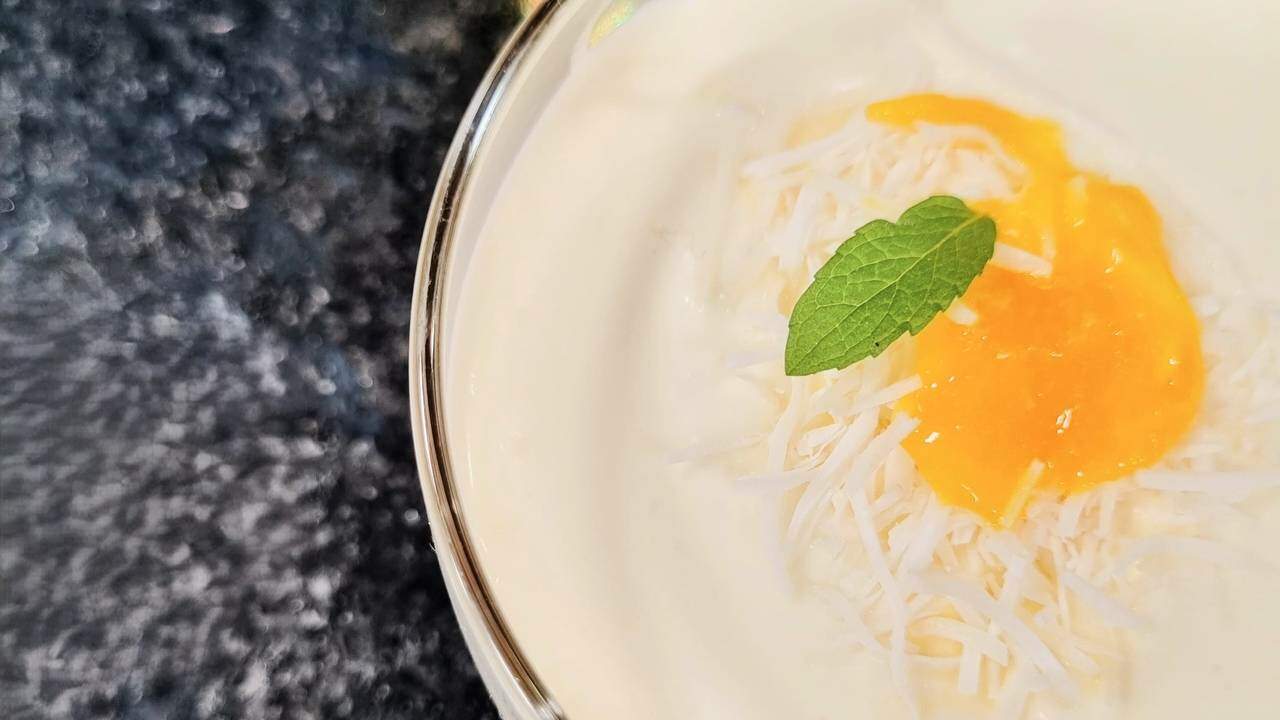 3 - Adicione o leite de coco aos poucos, misturando delicadamente com uma espátula até incorporar por completo;