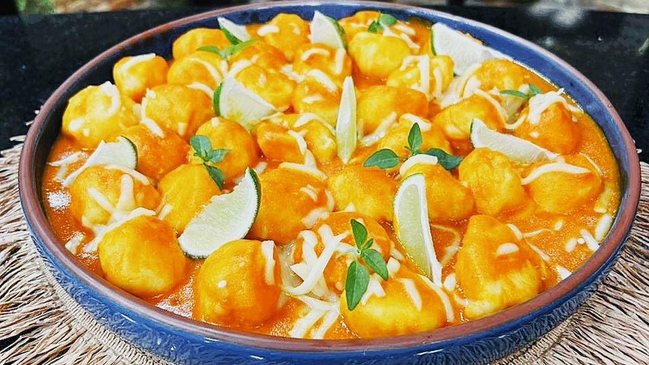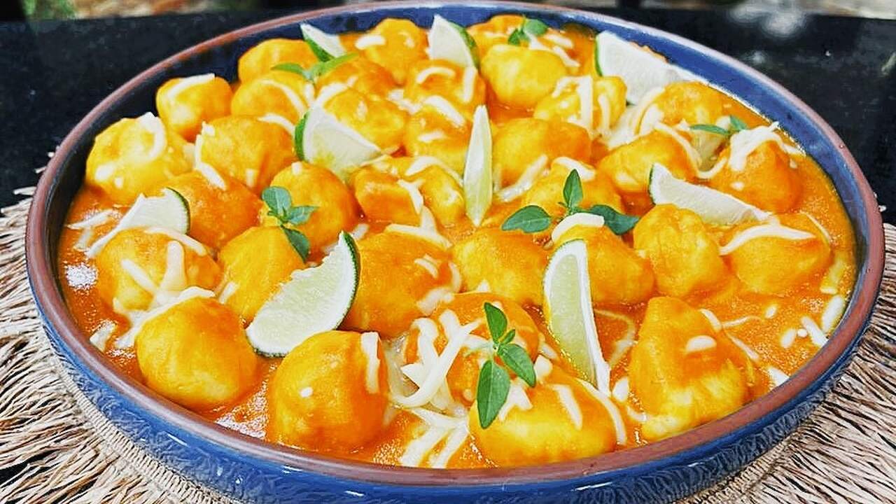 3. Faça bolinhas e leve para cozinhar com água quente. E deixe cozinhar até boiar;