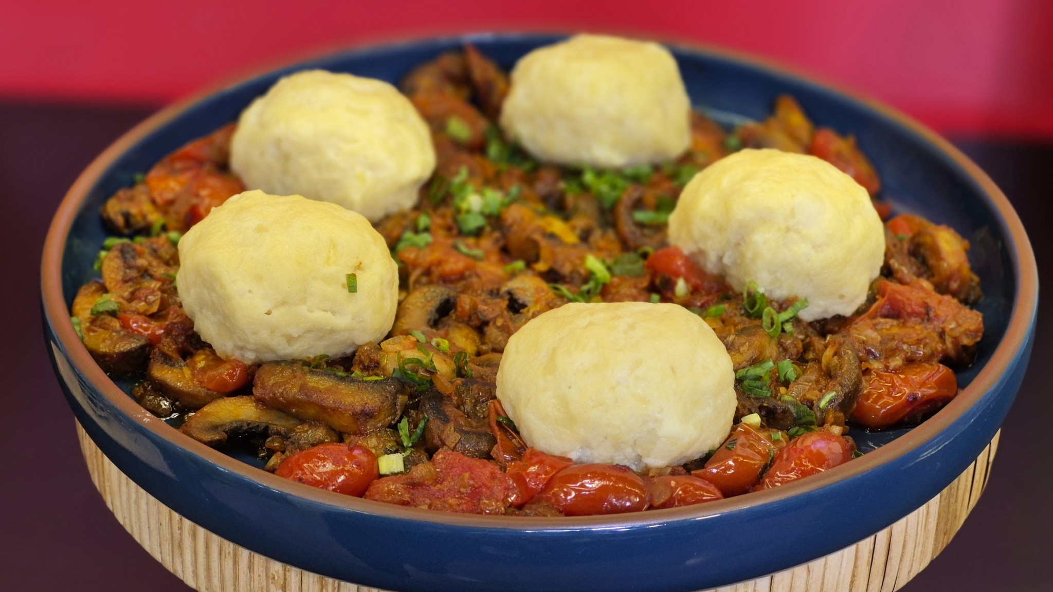 5. Ajuste o sal e pimenta, finalize com a cebolinha verde e o manjericão.