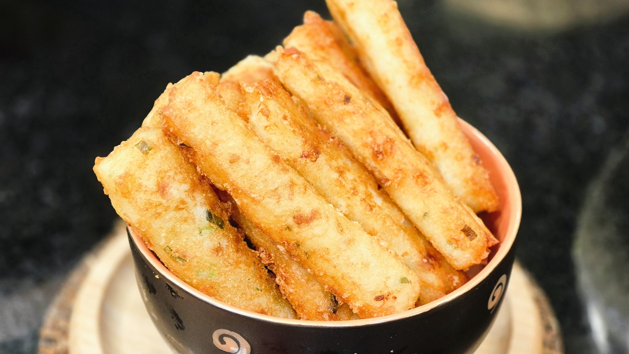 3. Corte em palitos e leve para fritar com um pouco de óleo em uma frigideira grande.
