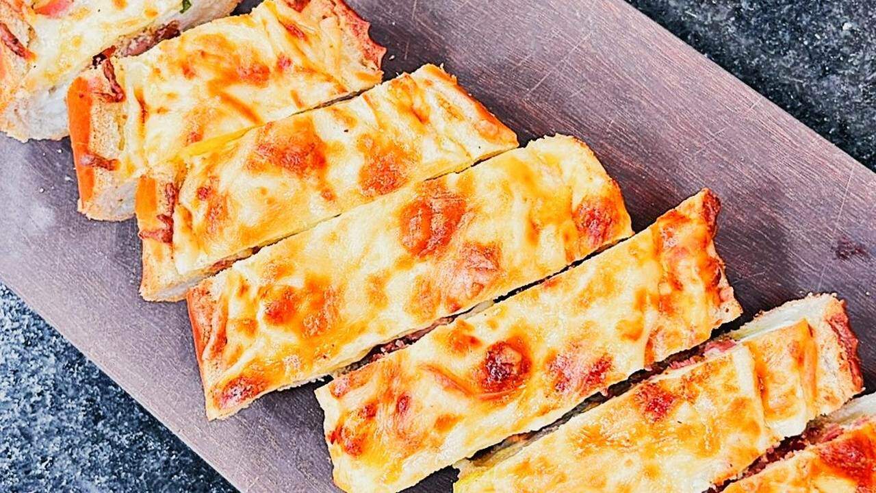 1. Retire a tampa do pão, cave o miolo, coloque os ovos, tempere com sal e pimenta, coloque o bacon, cubra com os queijos.