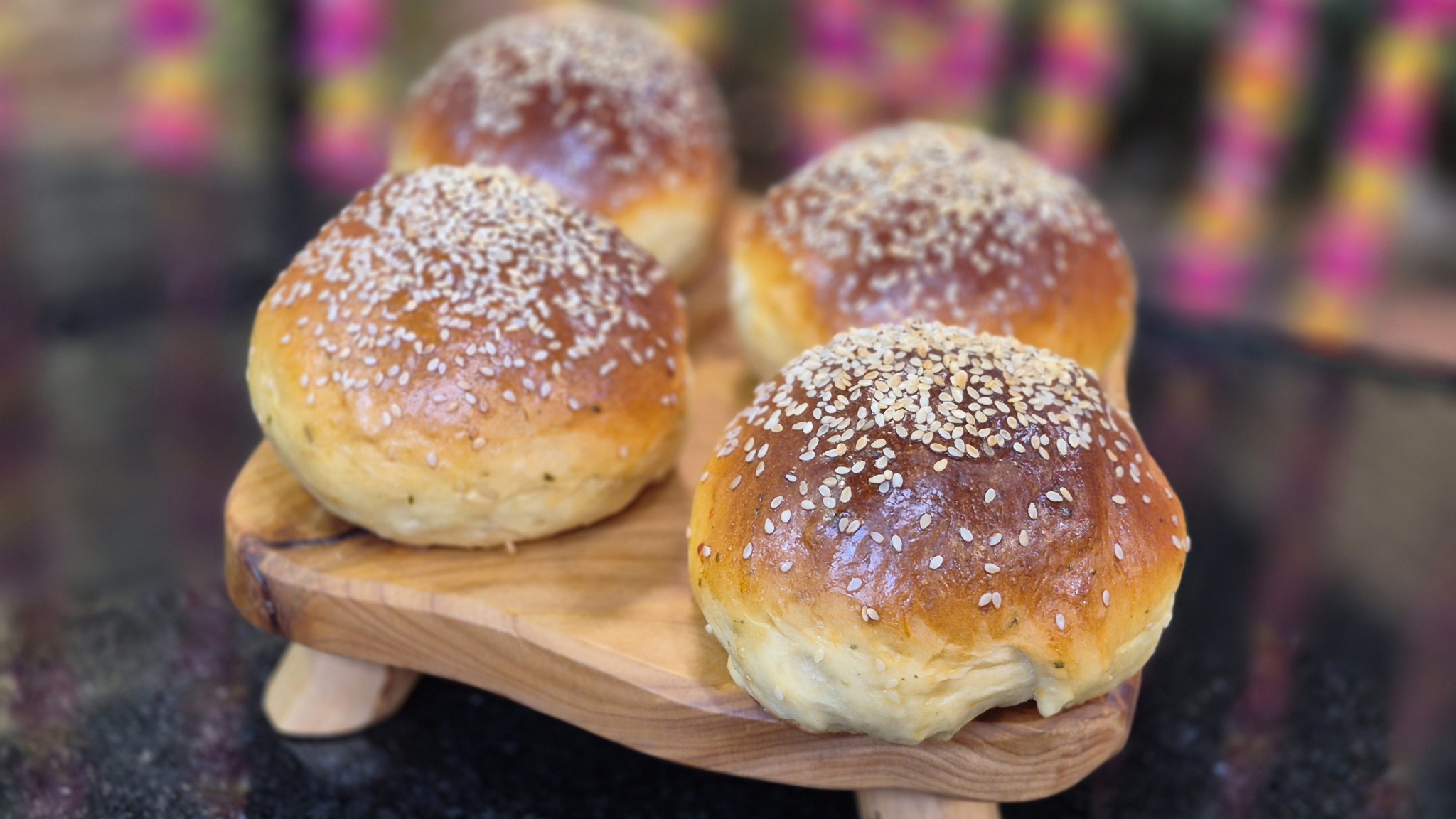 5- Pincele os pães com o ovo batido e polvilhe o gergelim.