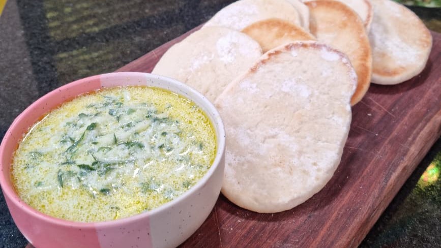7. Com a ajuda de um rolo, abra cada bolinha em formato circular, deixando a massa achatada.