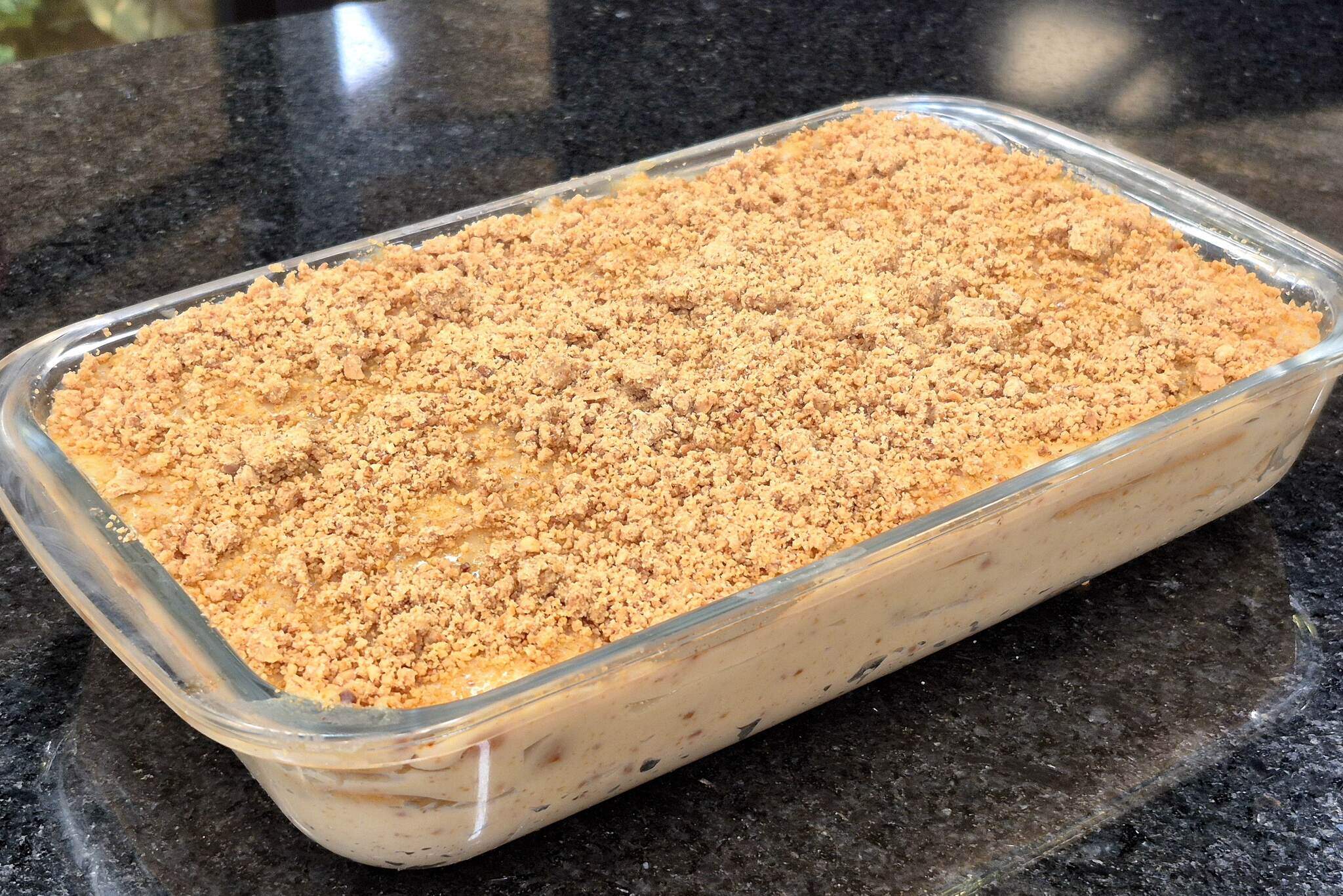 3. Cubra com o creme e finalize com o restante da paçoca.