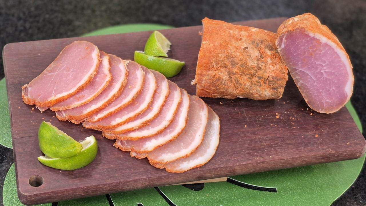 1. Coloque o lombo no sal grosso e cubra-o todo. Cubra com o plástico filme e leve para a geladeira por 4 dias.