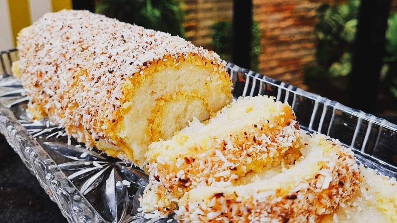 4. Retire o papel manteiga, passe o beijinho e enrole a massa;