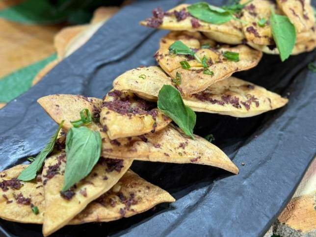 De entrada o chef Léo vai fazer Crostini com Pesto de Azeitona Preta. E o crostini é um prato de origem italiana que remonta à Idade Média, e significa pedaço de pão torrado. O pesto de azeitona preta tem forte influência das cozinhas do sul da Itália e também da Provence, na França, onde pastas de azeitonas são muito populares. O crocante do pão combina perfeitamente com a cremosidade intensa do pesto de azeitona preta, criando uma experiência sensorial de texturas e sabores contrastantes.