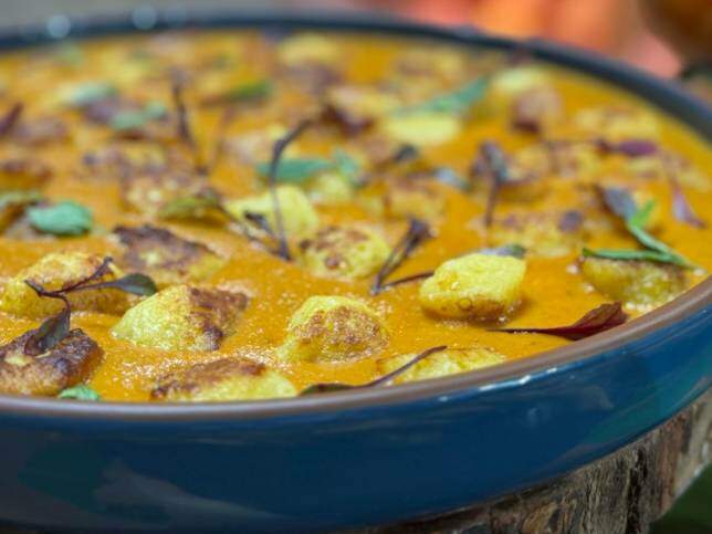De prato principal virá um Nhoque de Mandioca. Vale contar que o nhoque é um prato típico da Itália, que surgiu provavelmente no século XVII na região da Lombardia. A palavra "nhoque" vem do italiano gnocco, que significa "nó", em referência ao formato característico da massa. Já a mandioca surgiu na Amazônia, provavelmente na região onde hoje é o estado de Rondônia.