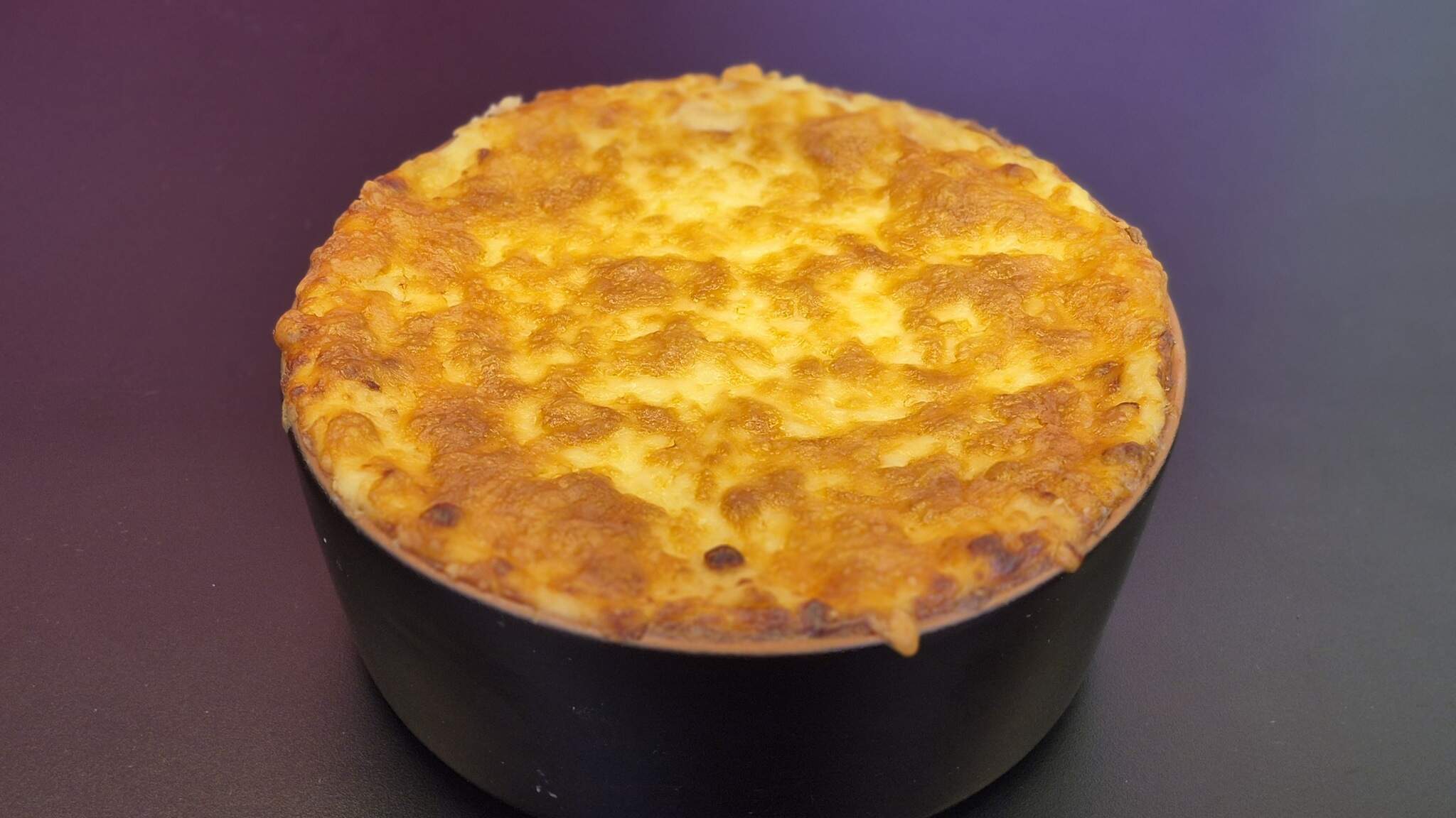 5. Retire do fogo e coloque a preparação em uma travessa, cubra com o requeijão cremoso, salpique o queijo meia-cura e leve para gratinar em forno pré-aquecido a 200°C por 30 minutos.