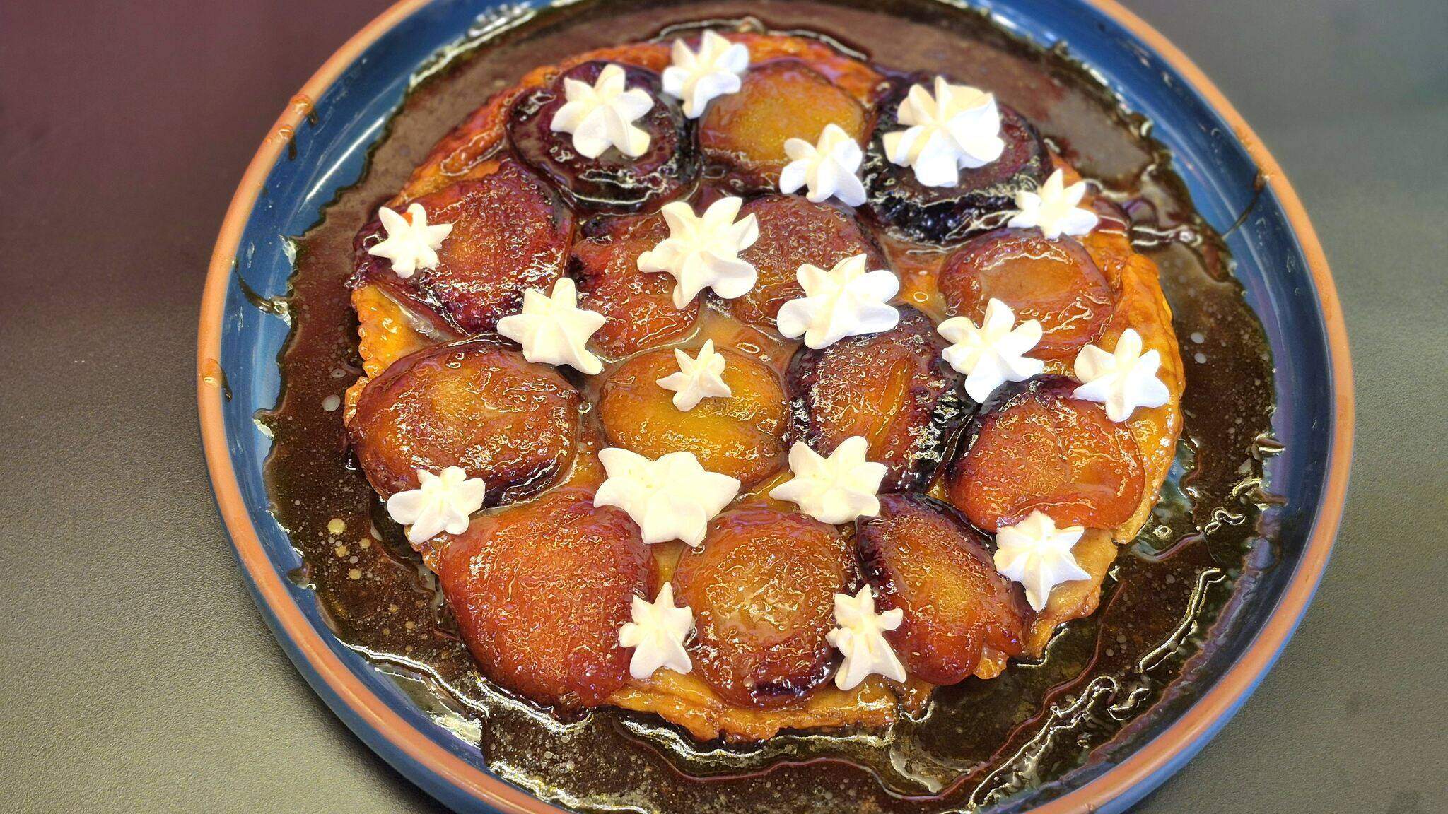 5. Abra a massa gelada e cubra com os pêssegos. Encaixe bem nas laterais.