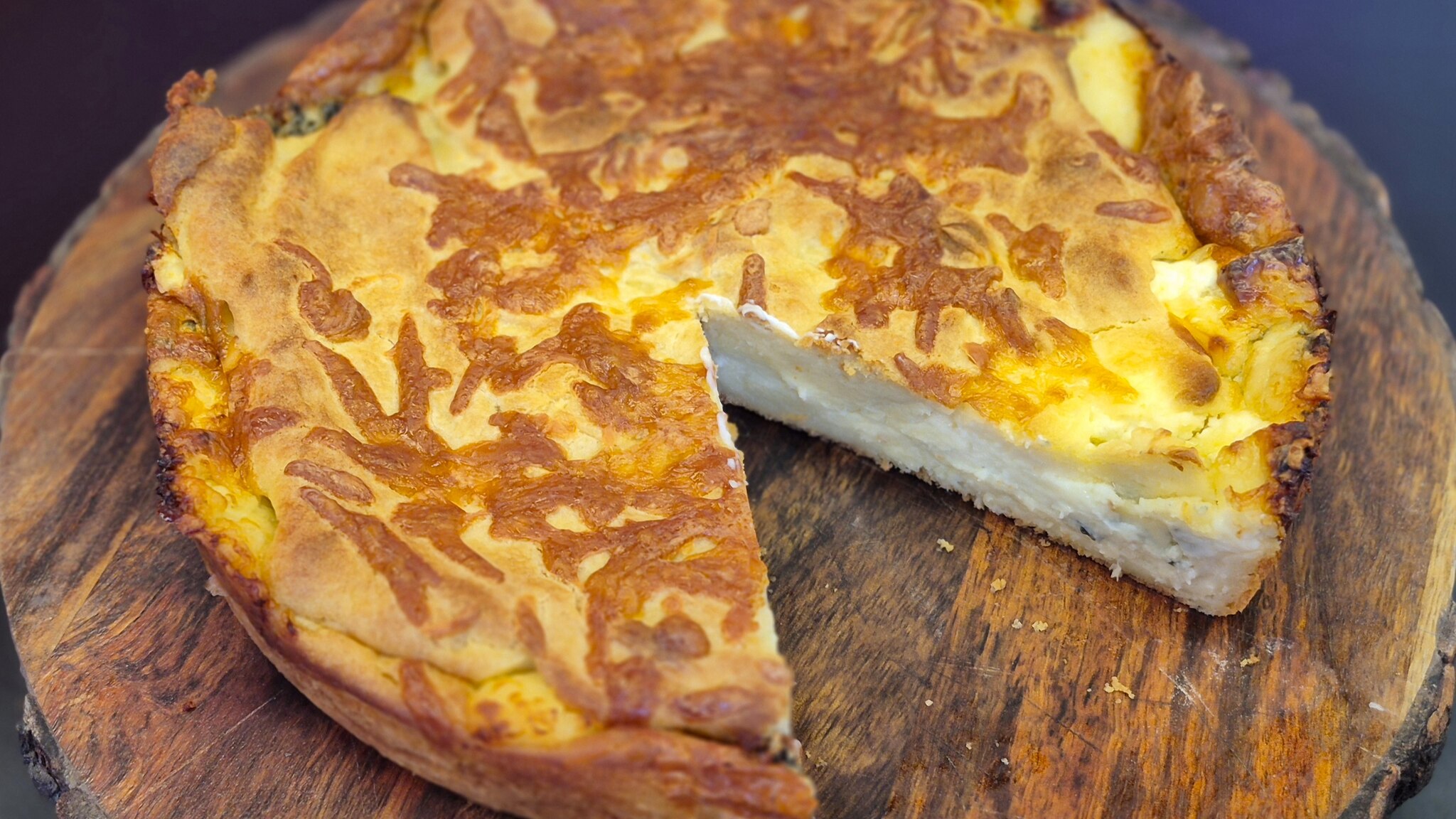 4. Em uma assadeira, coloque uma parte da massa, cubra com uma parte dos queijos (deixando um pouco para cobrir), espalhando-os em cima dessa metade massa.