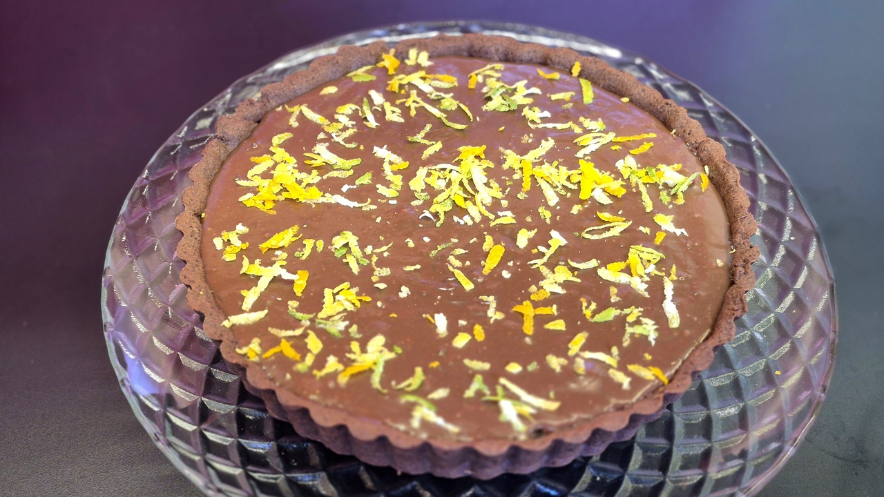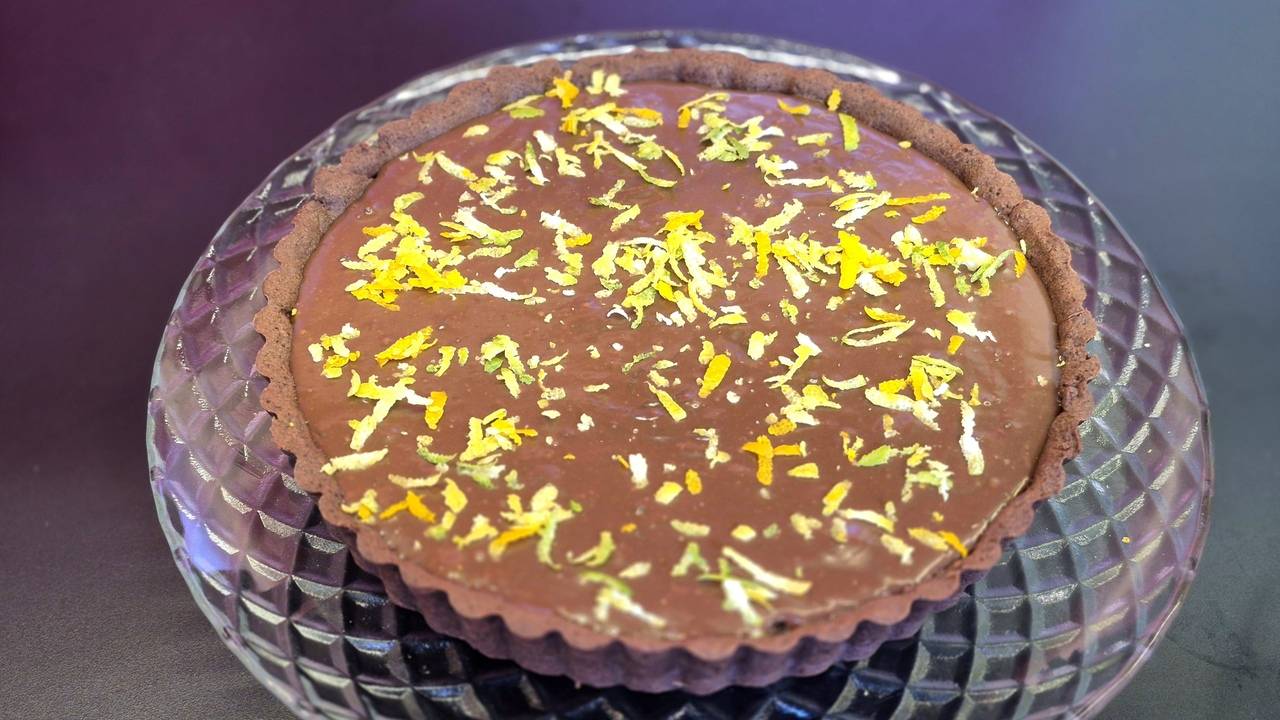 2. Cubra a geleia com a ganache de laranja e leve a torta para gelar 4 horas.