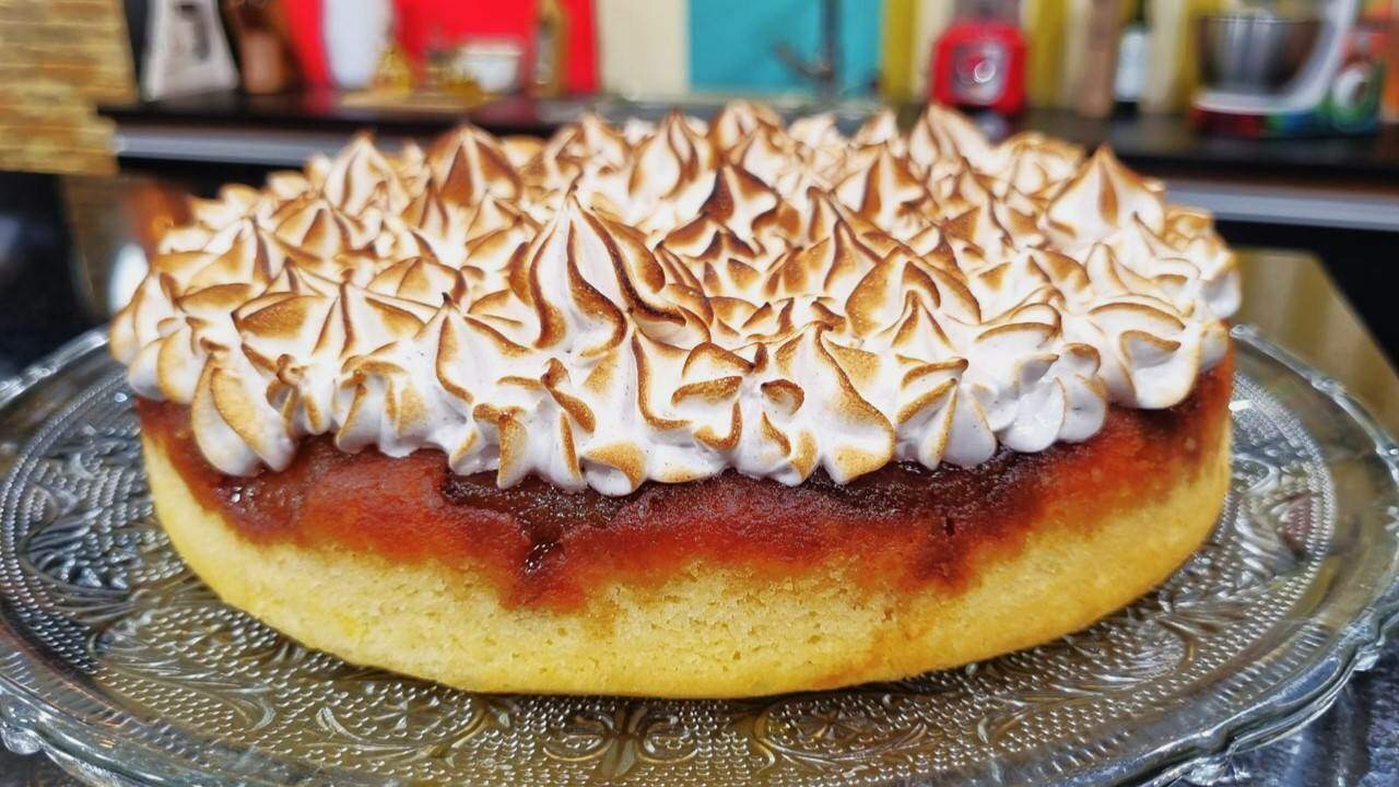3. Cubra com merengue de canela e se preferir, use um maçarico para tostar.