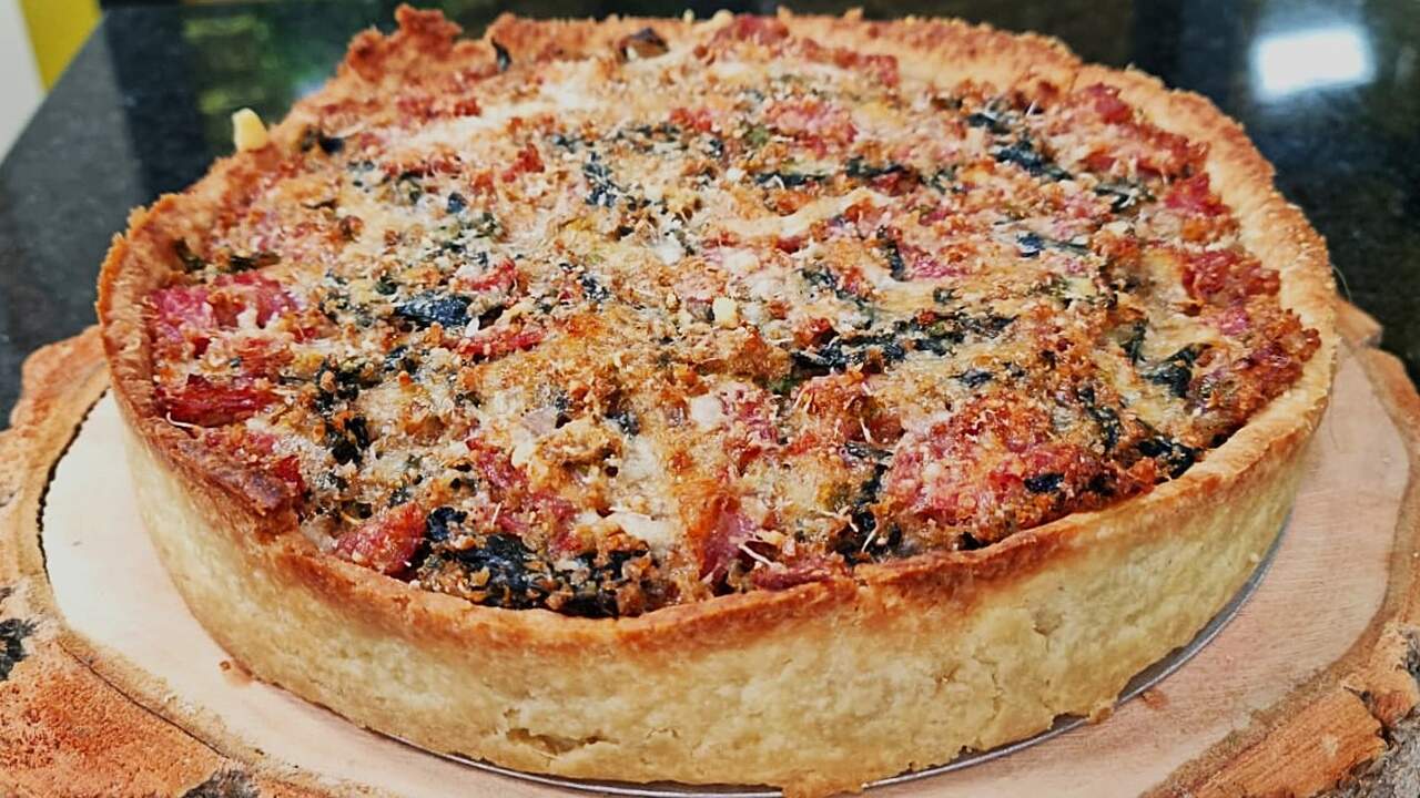 5. Coloque na torta já pré assada, leve para assar novamente a 180°C por 20 minutos.