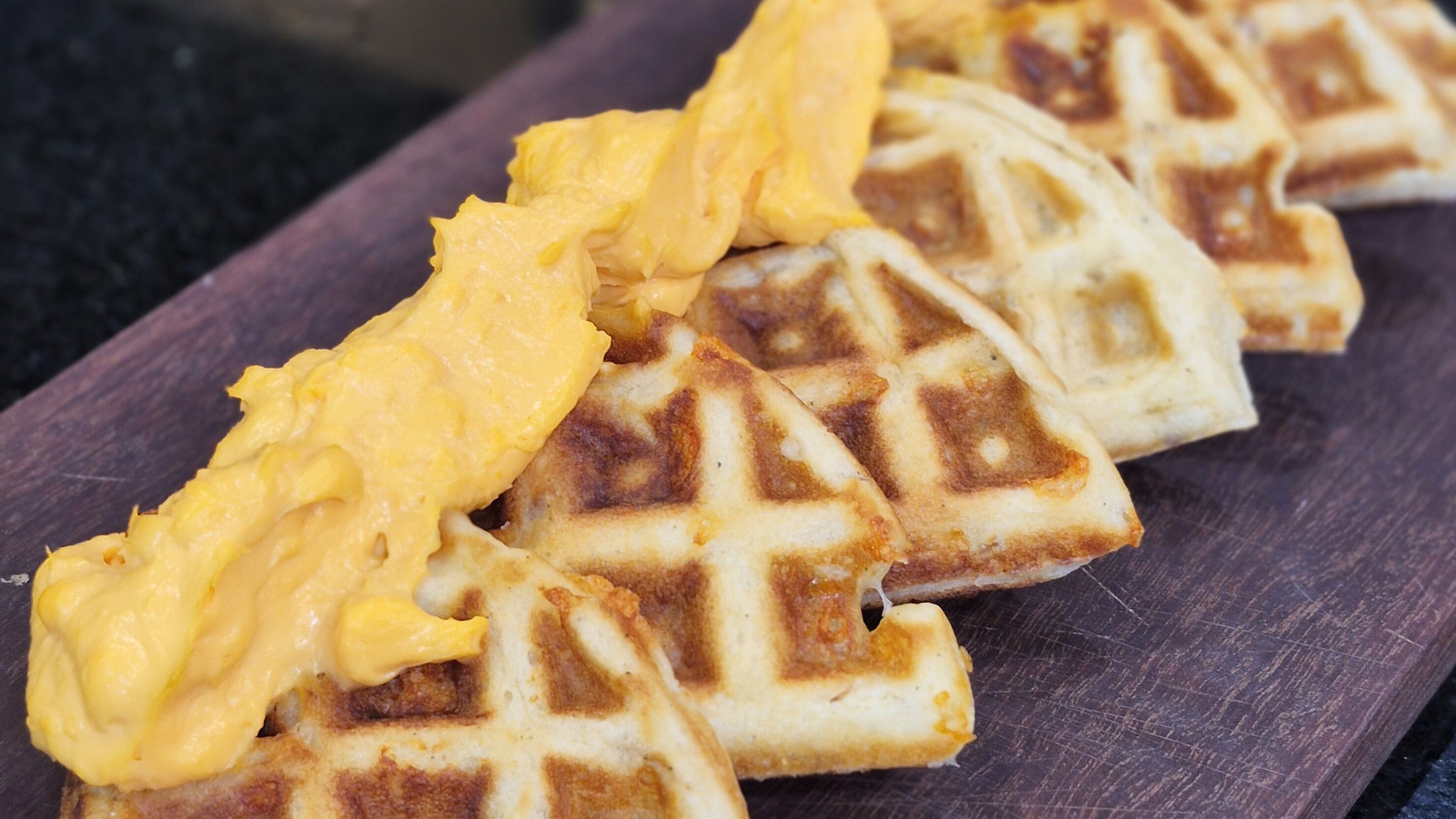 5- Aqueça a máquina de waffle, pincele um pouco de manteiga, coloque uma concha bem cheia da massa e deixe cozinhar até ficar dourado.
