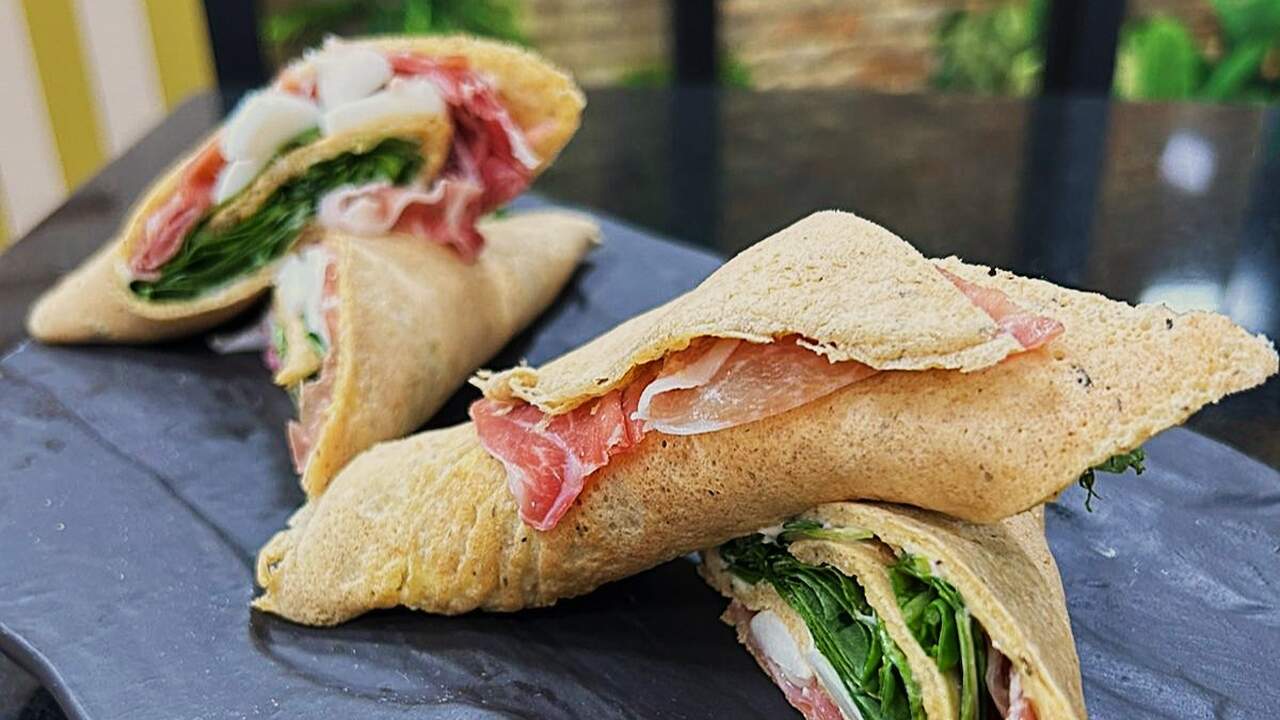 3 – Passe a maionese, coloque a mussarela de búfala e o presunto Parma. Feche e deixe grelhar dos dois lados.