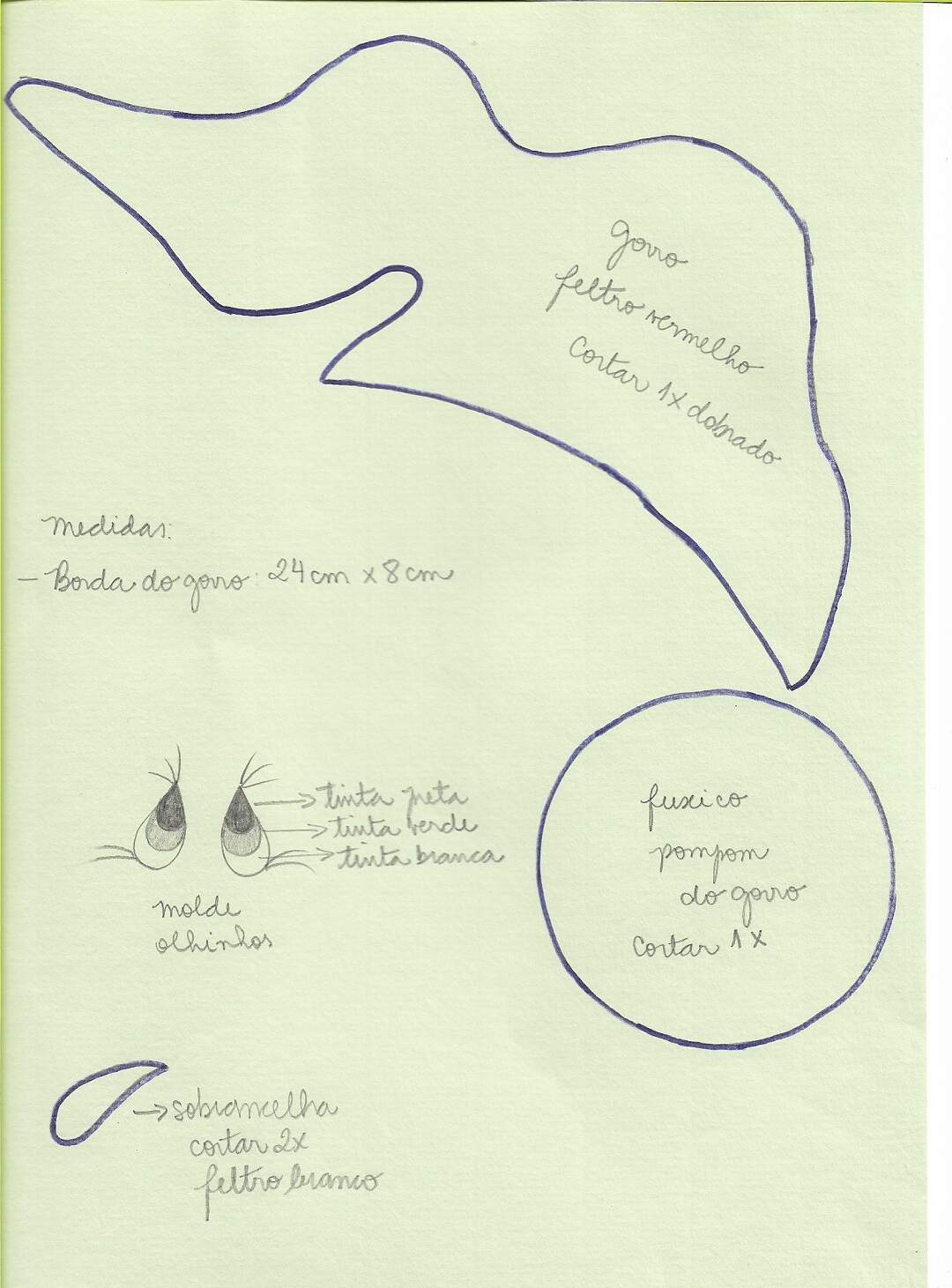 -para o gorro, utilize o feltro na cor vermelha ou qualquer tecido de sua escolha e corte conforme indica o molde;