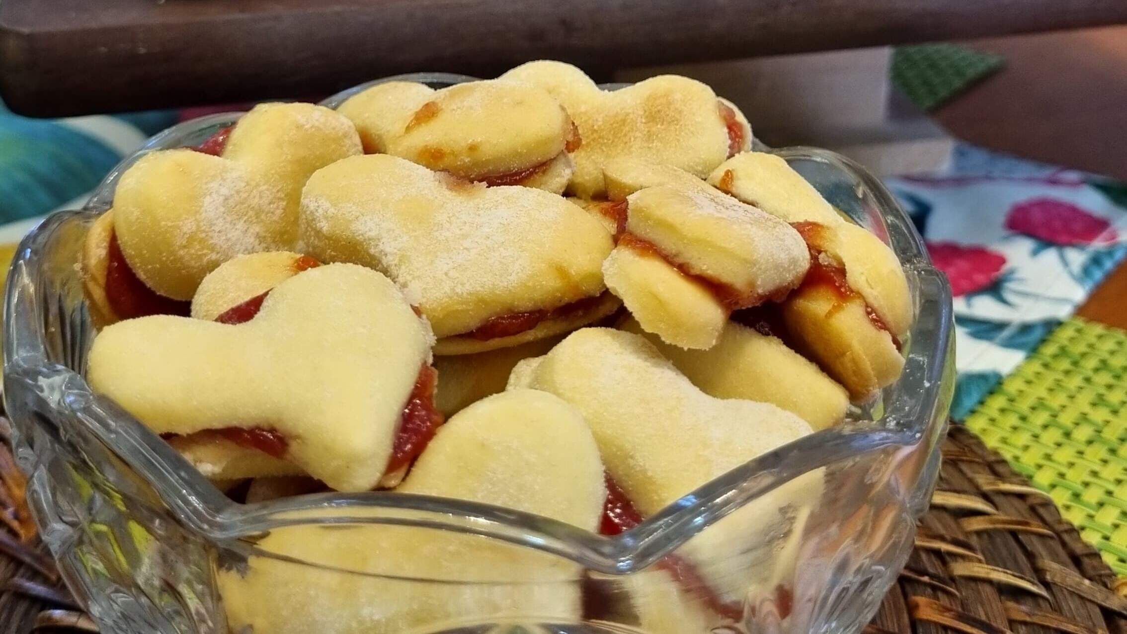 3 - Retire do forno, recheie com goiabada e cubra com outra bolacha;