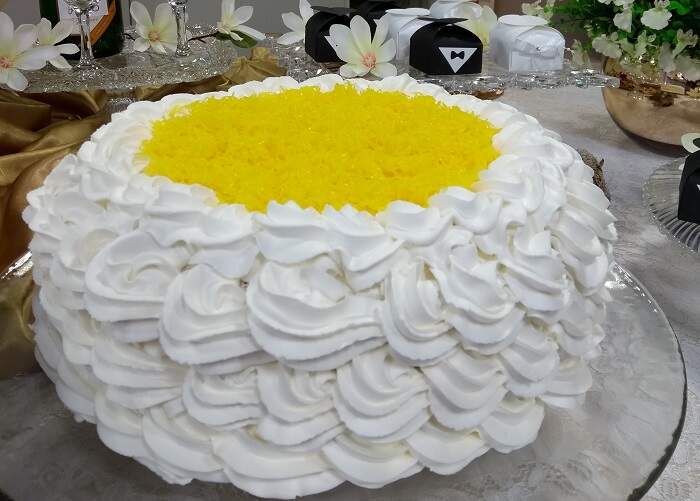1. cortar a massa do bolo em 3 camadas, rachar com a baba de moça e o doce de abacaxi, levar a geladeira por 10 horas e decorar a gosto.