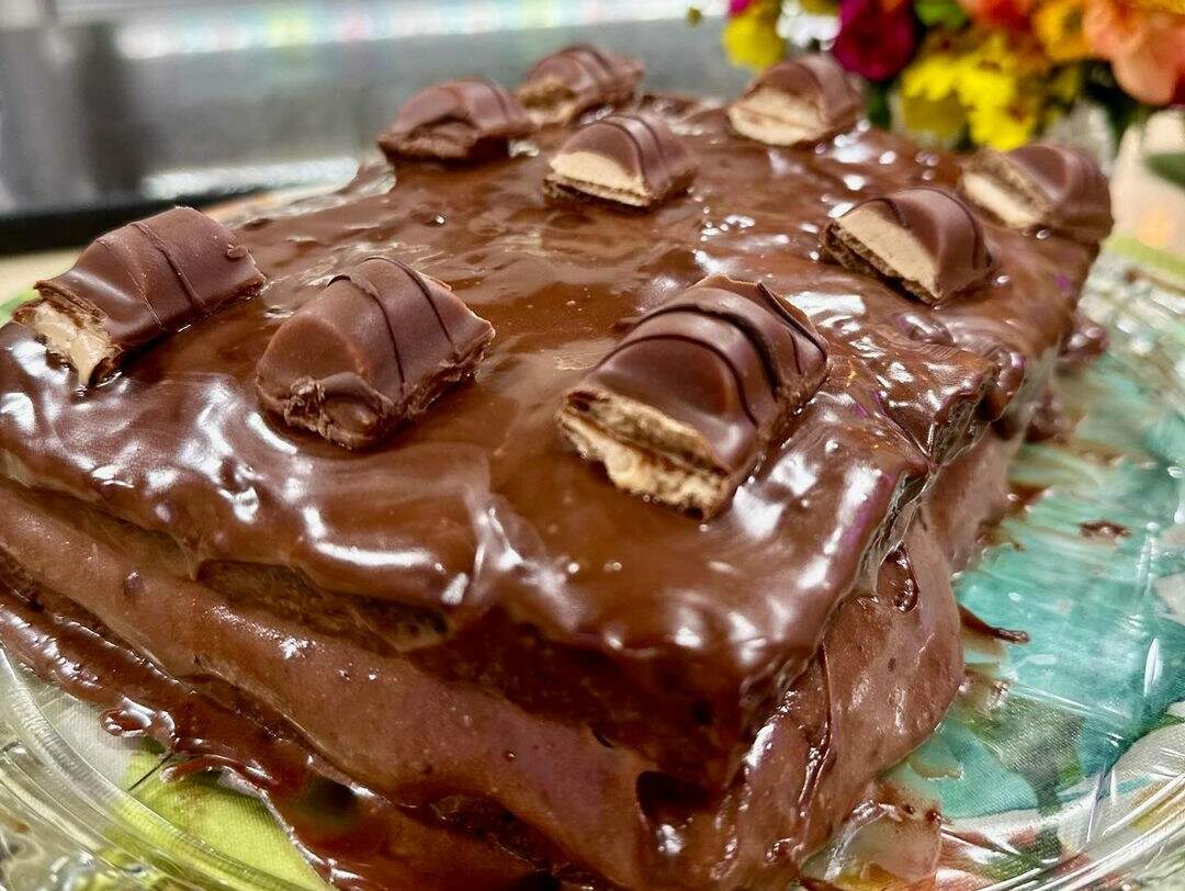 Espalhe o creme e alise com uma espátula. Coloque um pouco do chocolate no meio do creme. Leve o bolo à geladeira por 30 minutos.