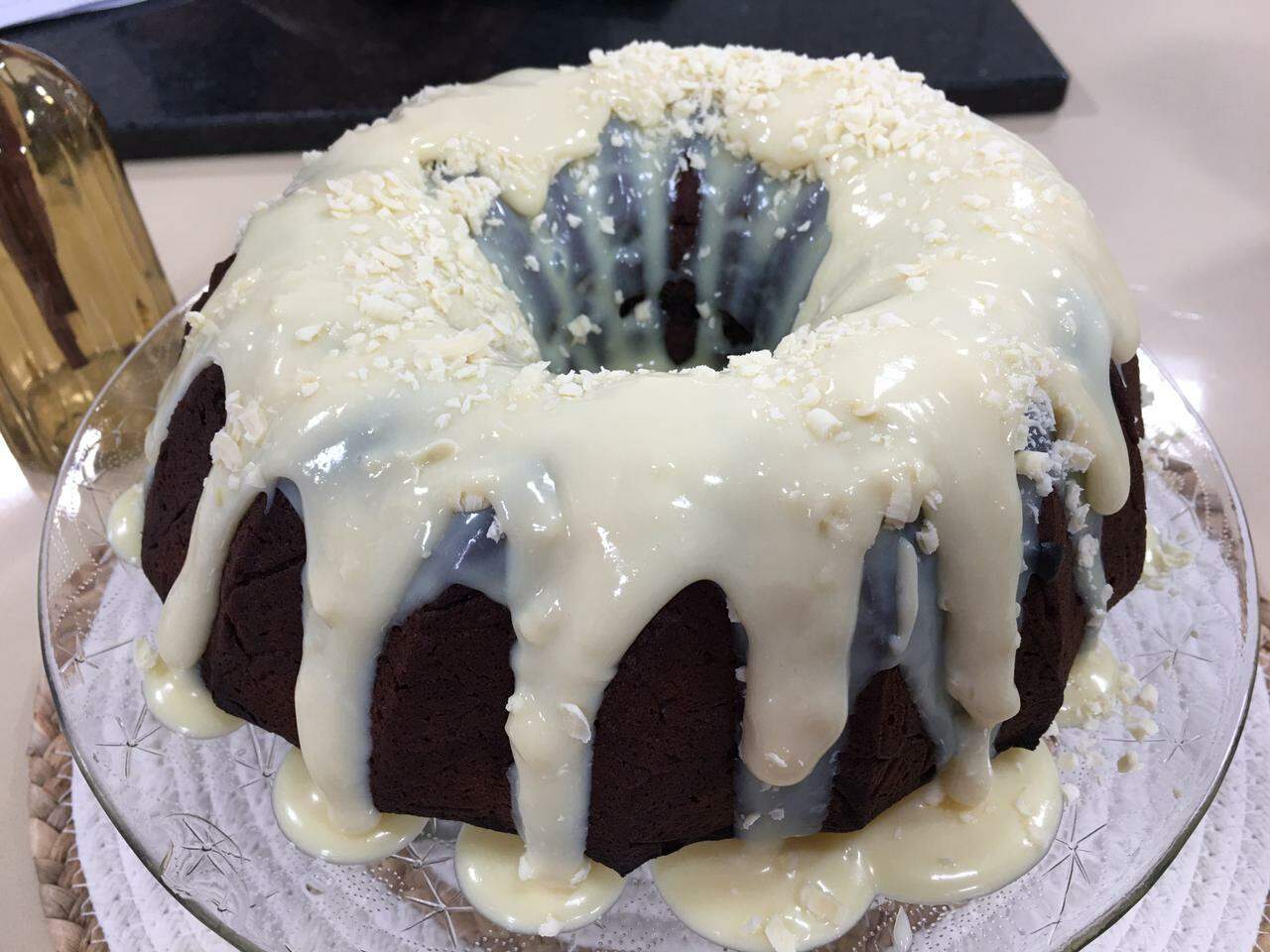 -Despejar a ganache sobre o bolo de chocolate e levar à geladeira até que esteja firme.
