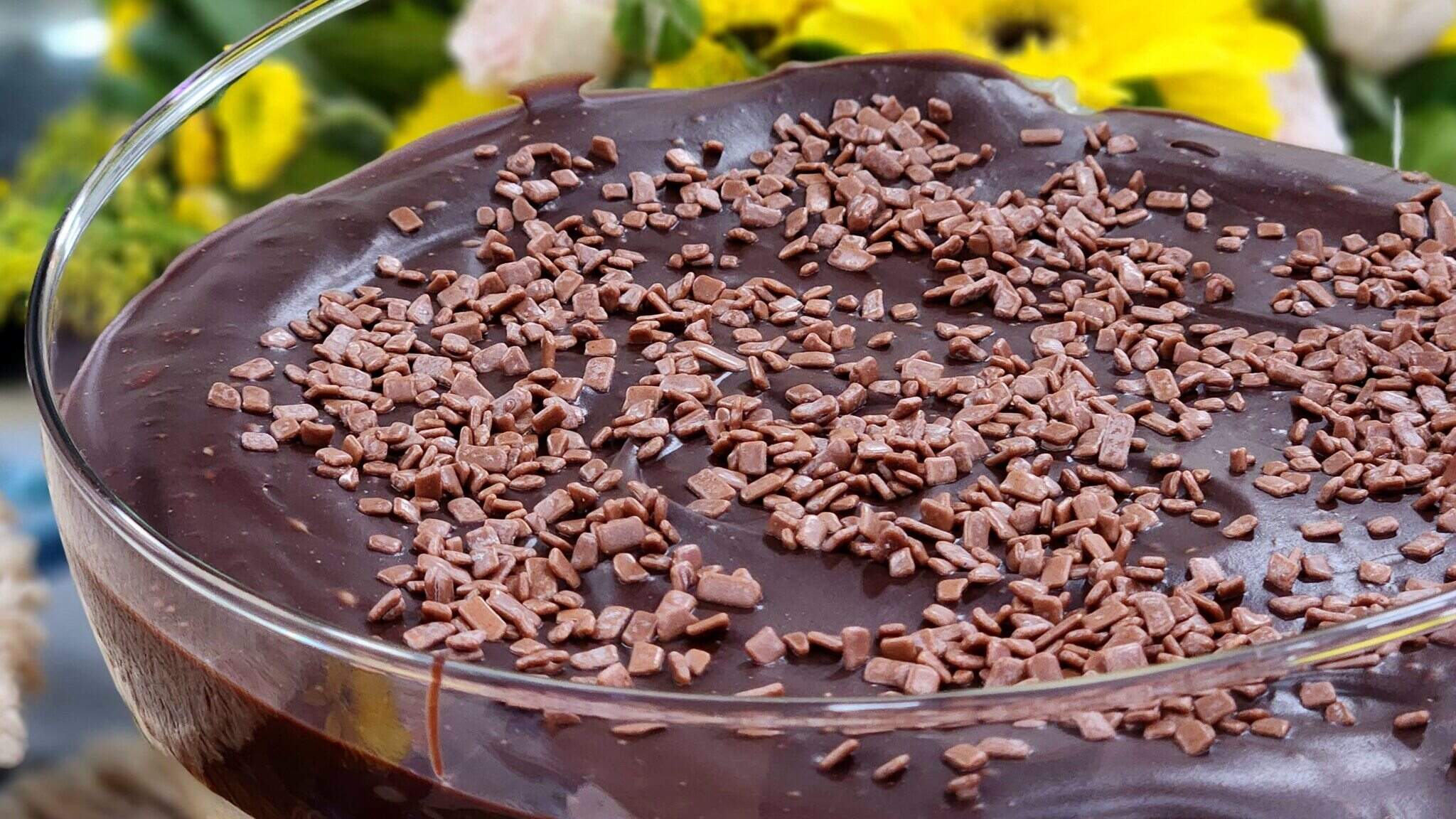 Para a ganache, derreter o chocolate meio amargo de 30 em 30 segundos no microondas, mexendo sempre, até que esteja completamente derretido. Misturar o creme de leite ao chocolate e incorporar bem.