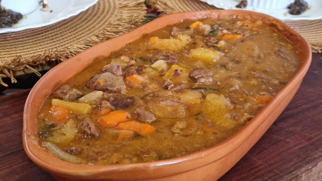 4 - Coloque a cebola, a cenoura, a parte branca da cebolinha, o alho-poró, o caldo e a mandioca, tampe a panela e deixe cozinhar em fogo baixo por aproximadamente 1 hora e meia.