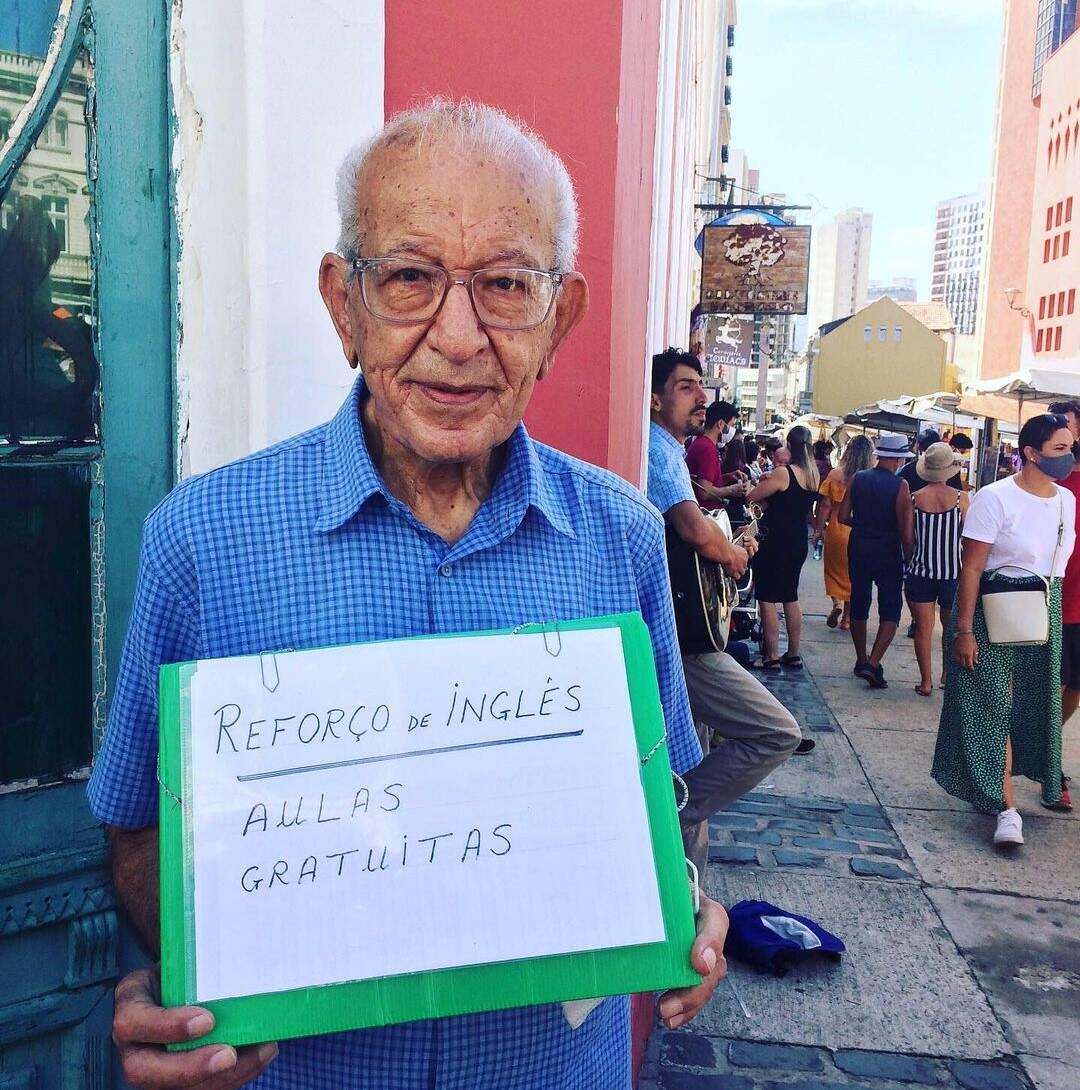 Porque sei que tem muitos que precisam estudar inglês, mas não têm condições financeiras de pagar um instituto ou aulas particulares. Foi aí que coloquei esse cartaz pequeno, uma plaquinha de papel sulfite, eu mesmo escrevi, três palavras: Ensino inglês gratuitamente", disse o Sr. Henrique na entrevista à Abiane Souza.