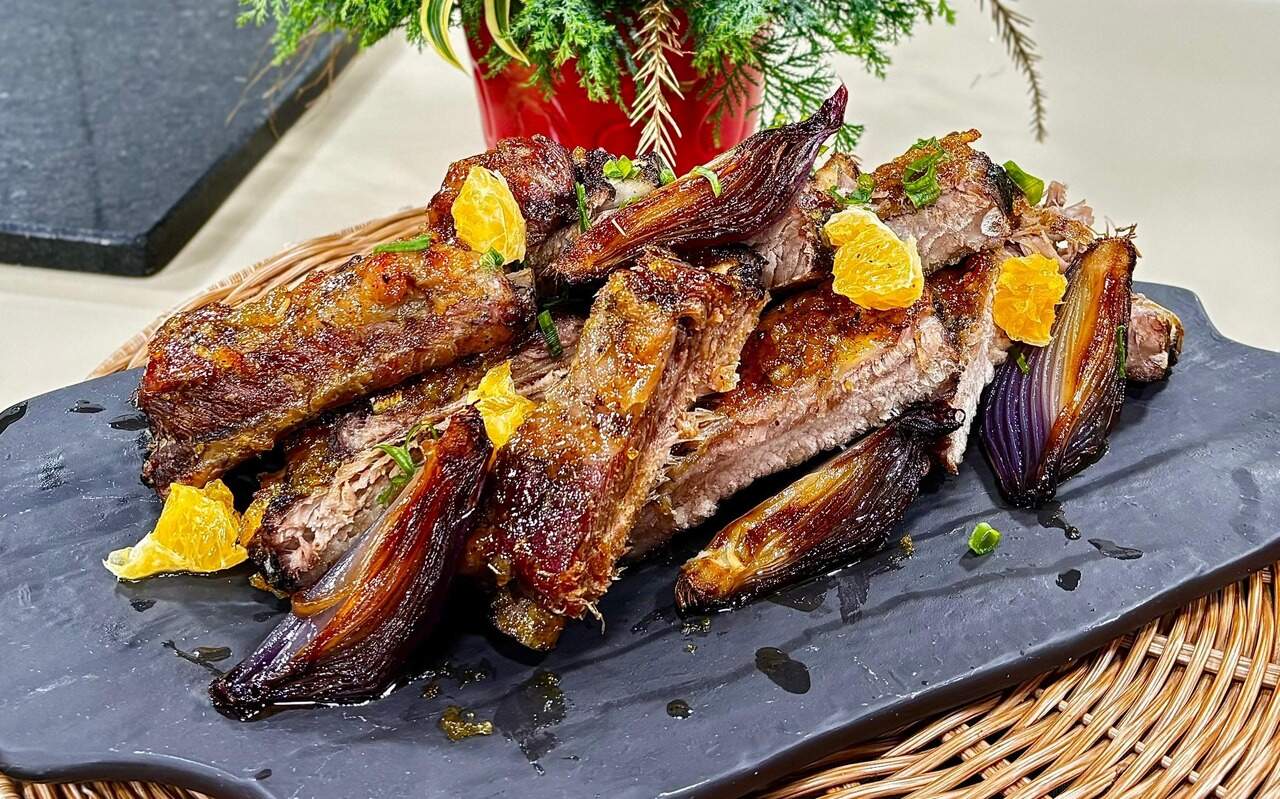 2. Ajuste o sal e a pimenta e coloque na costelinha.