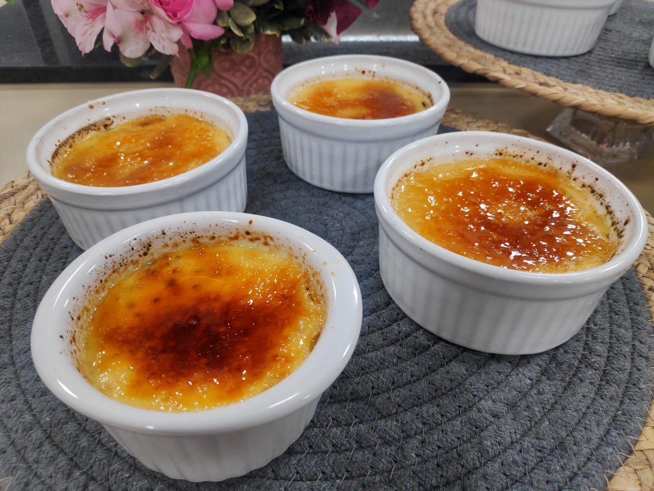 4. Deixar esfriar, polvilhar açúcar refinado por cima e queimar com o maçarico. Servir imediatamente.